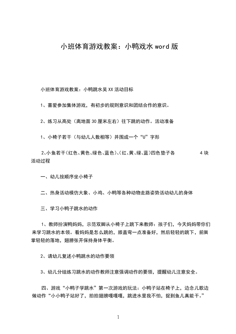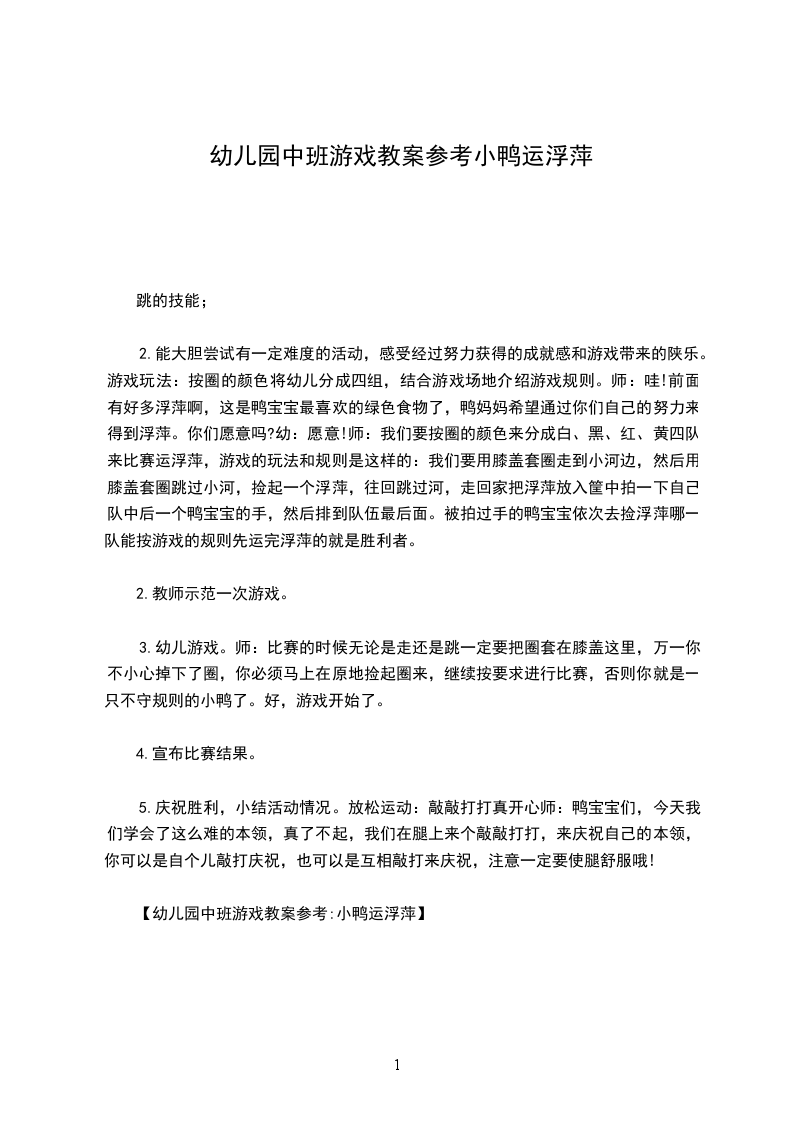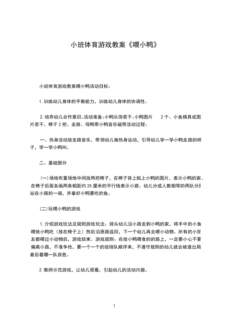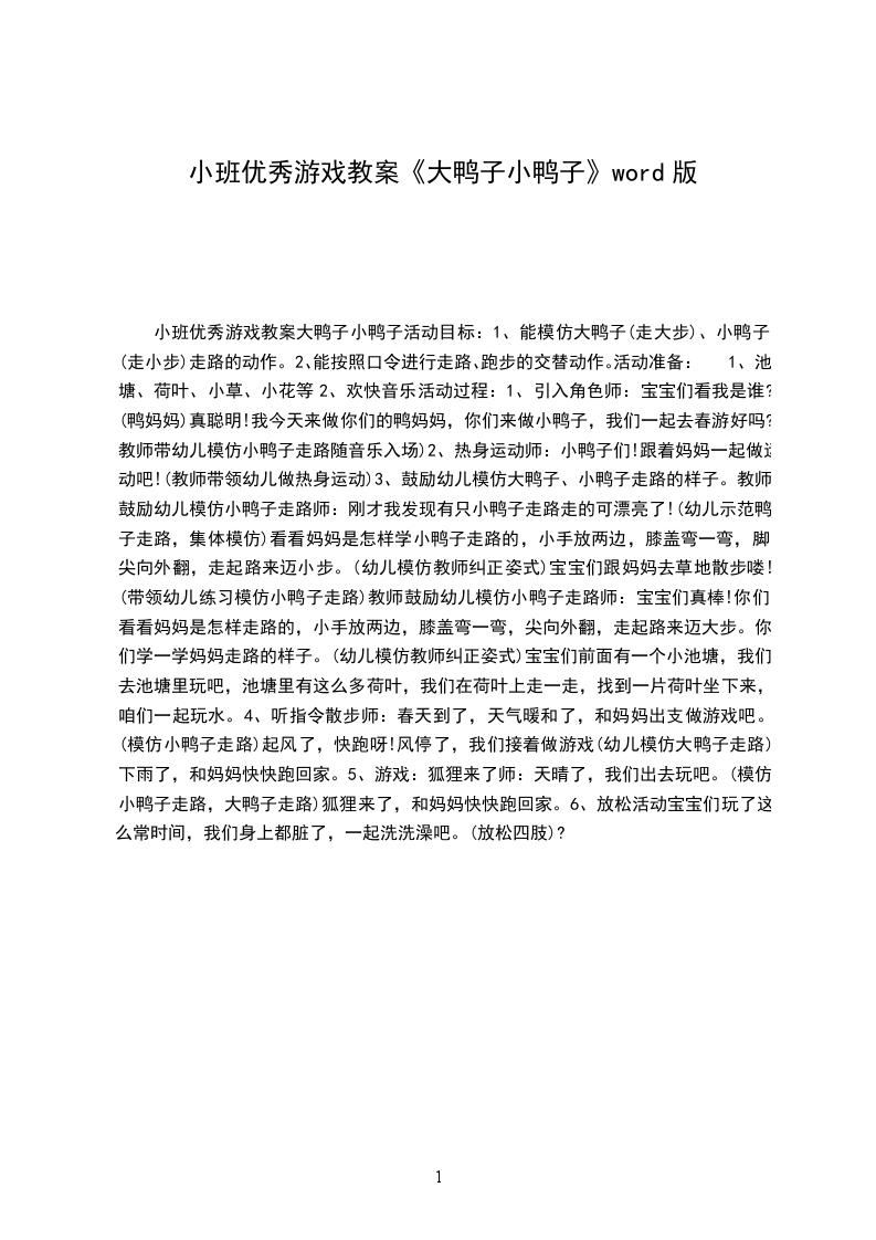 一、幼儿跟随教师做律动数鸭子开场。师:天气这么好,小鸭子们,让我们一起来做游戏吧!