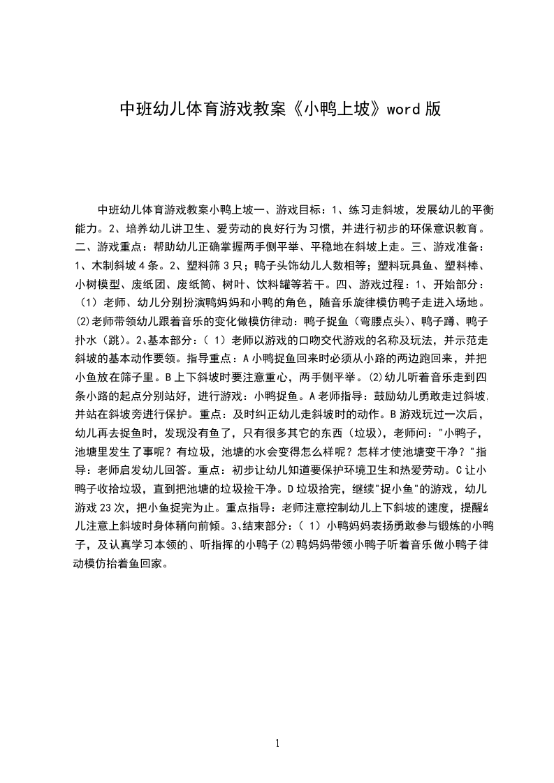 2、积极参与赶小鸭的活动,体验赶小鸭的乐趣。