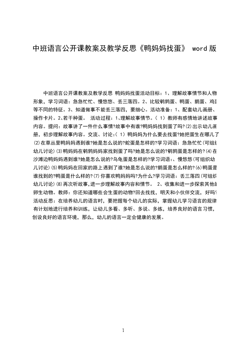 中班语言公开课教案及教学反思 鸭妈妈找蛋活动目标: