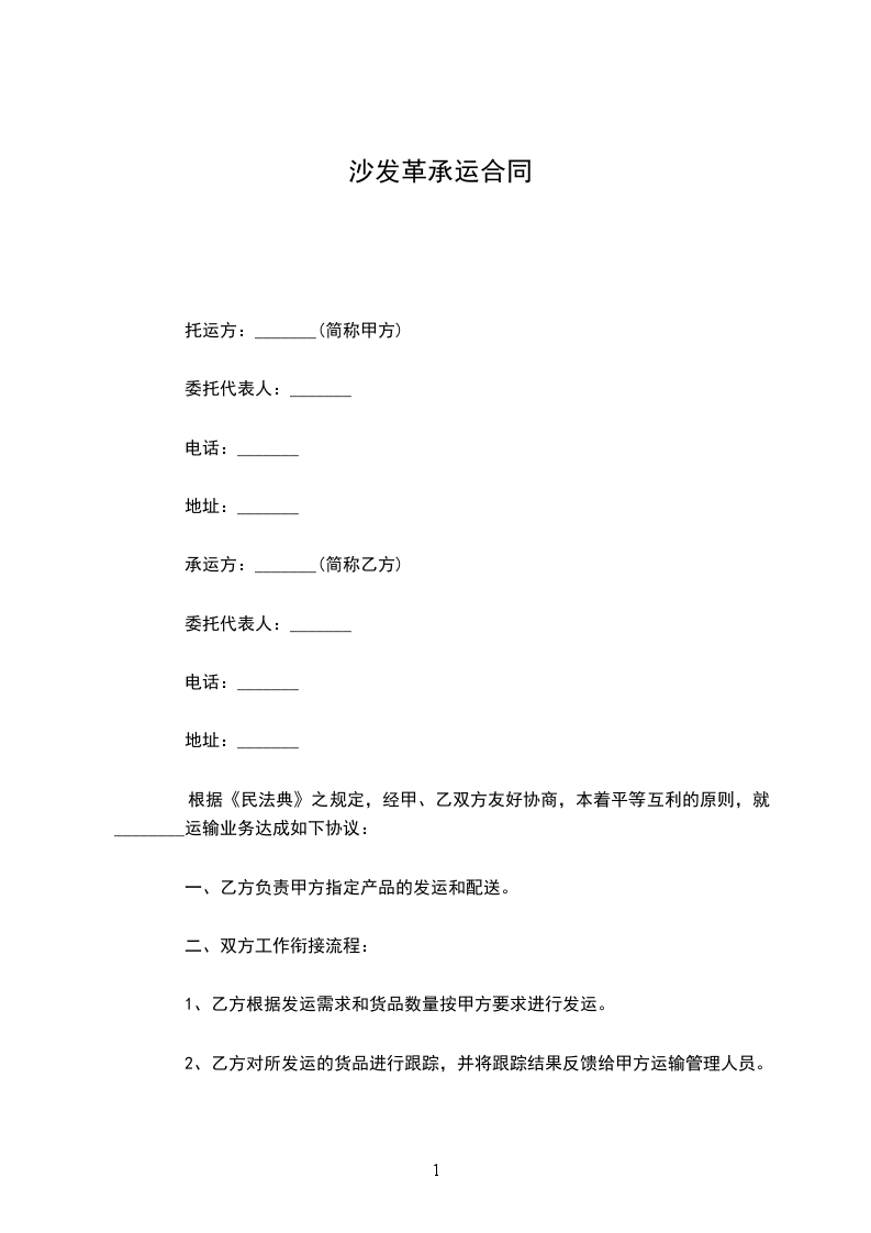 根据《民法典》之规定,经甲、乙双方友好协商,本着平等互利的原则,就________运输业务达成如下协议: