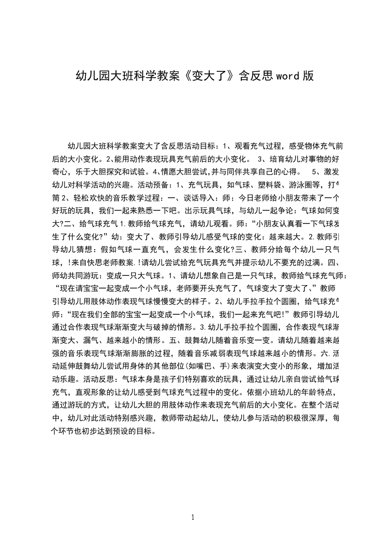 五、鼓舞幼儿随着音乐变一变。请幼儿随着越来越强的音乐表现气球渐渐膨胀的过程,随着音乐减弱表现气球越来越小的情形。六.活动延伸鼓舞幼儿尝试用身体的其他部位(如嘴巴、手)来表演变大变小的形象,增加活动乐趣。活动反思:气球本身是孩子们特别喜欢的玩具,通过让幼儿亲自尝试给气球充气,直观形象的让幼儿感受到气球充气过程中的变化。依据小班幼儿的年龄特点,通过游玩的方式,让幼儿大胆的用肢体动作来表现充气前后的大小变化。在整个活动中,幼儿对此活动特别感兴趣,教师带动起幼儿,使幼儿参与活动的积极很深厚,每个环节也初步达到预设的目标。