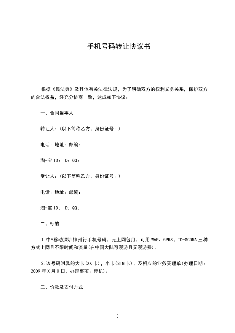 4.如因深圳*动关于该号码的上网政策变动而导致乙方上网费用增加,甲方无须退还转让价格,但需提供官方公告。