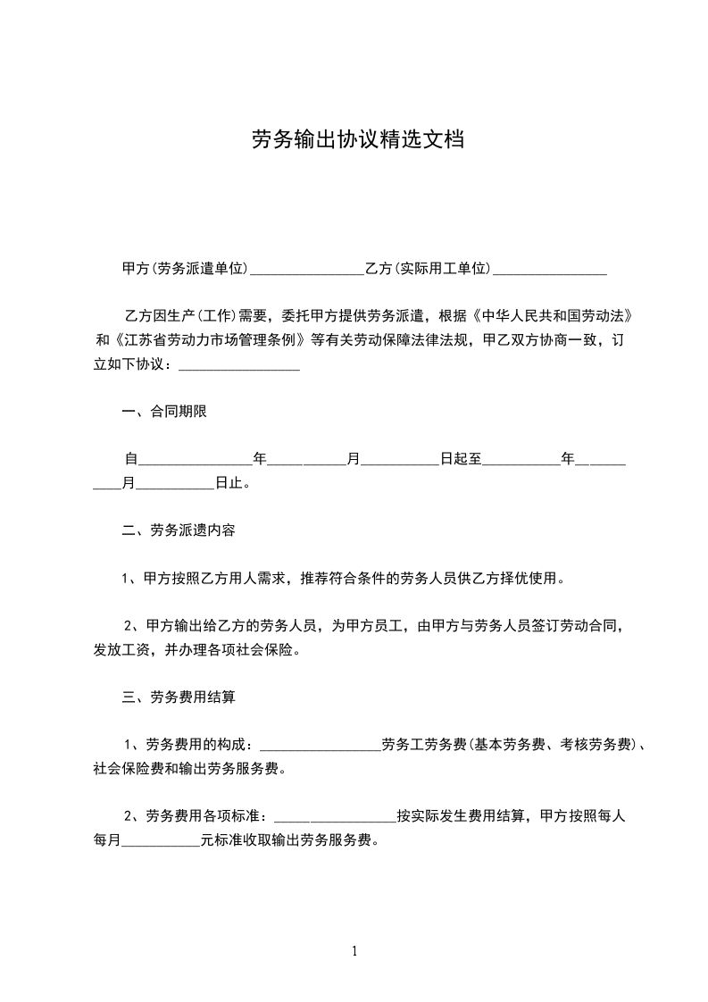 2、劳务费用各项标准:_________________按实际发生费用结算,甲方按照每人每月___________元标准收取输出劳务服务费。