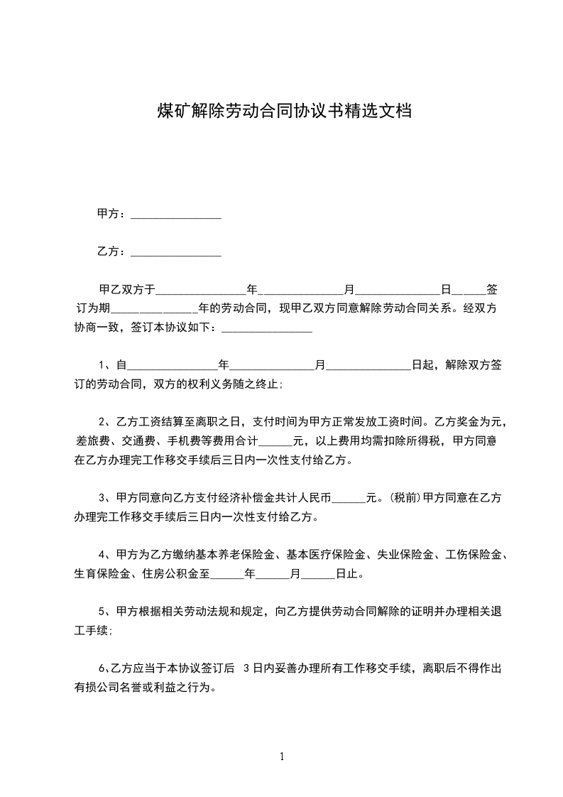 1、自________________年_______________月_______________日起,解除双方签订的劳动合同,双方的权利义务随之终止;