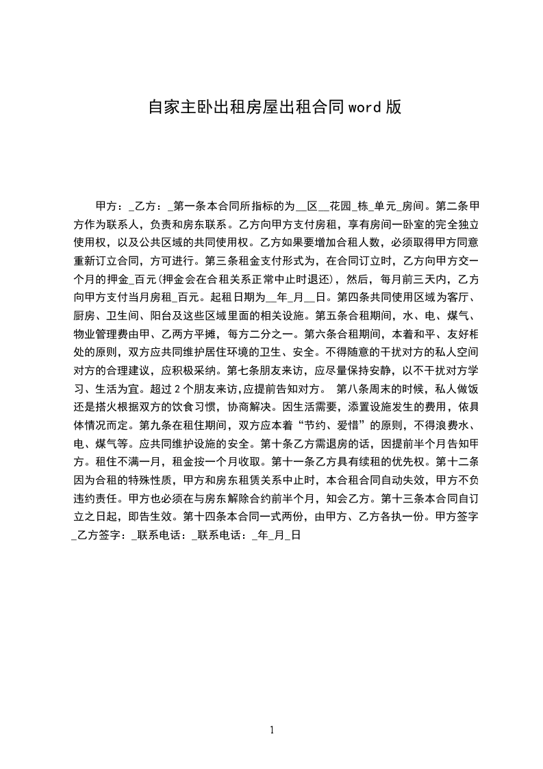 十二、本合同一式二份,由甲、乙双方各执一份。甲方签名:身份证号码:乙方签名:身份证号码:签约日期:__年__月__日