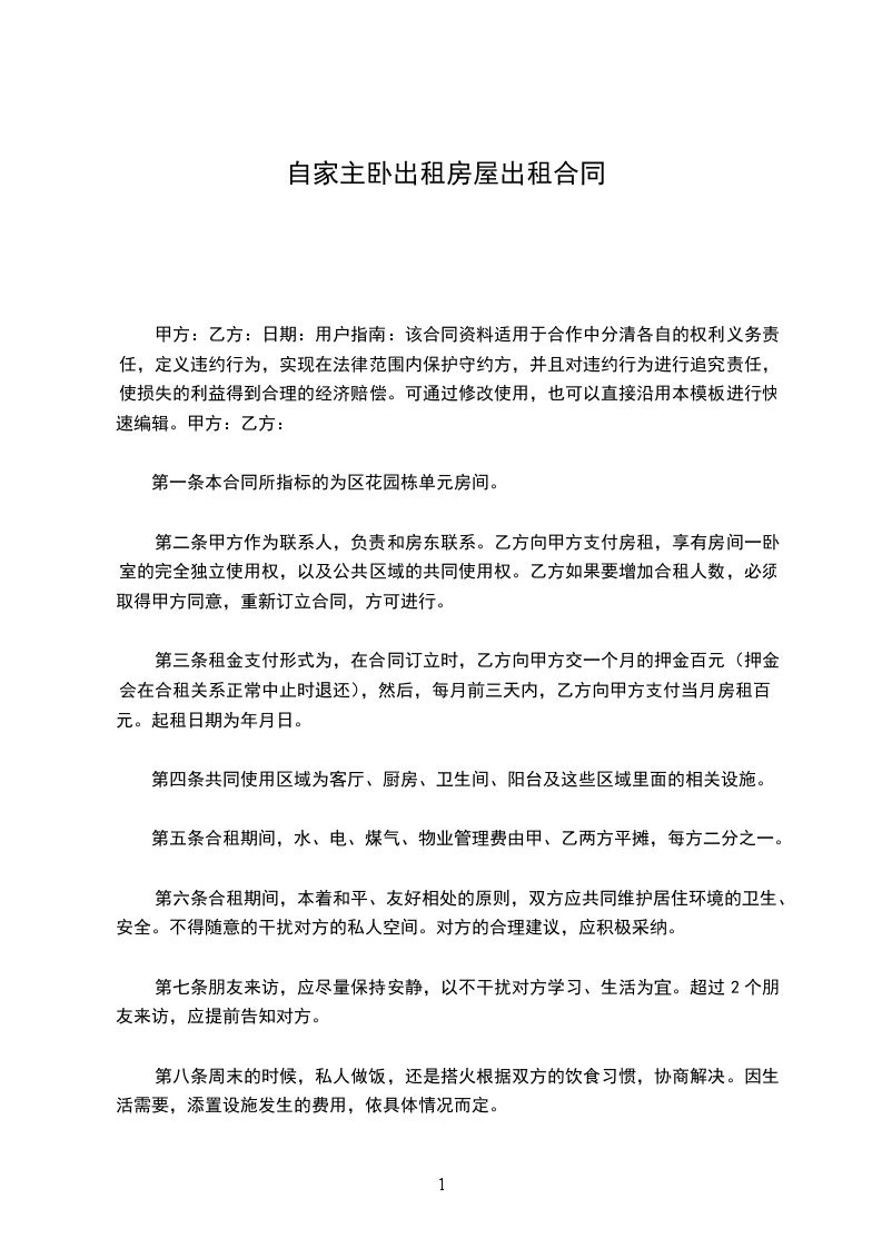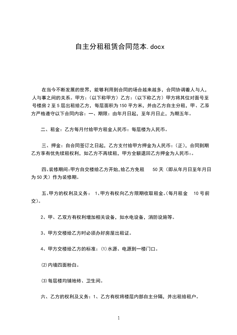 1、乙方有权将楼层内部自主分隔,并出租给租户。