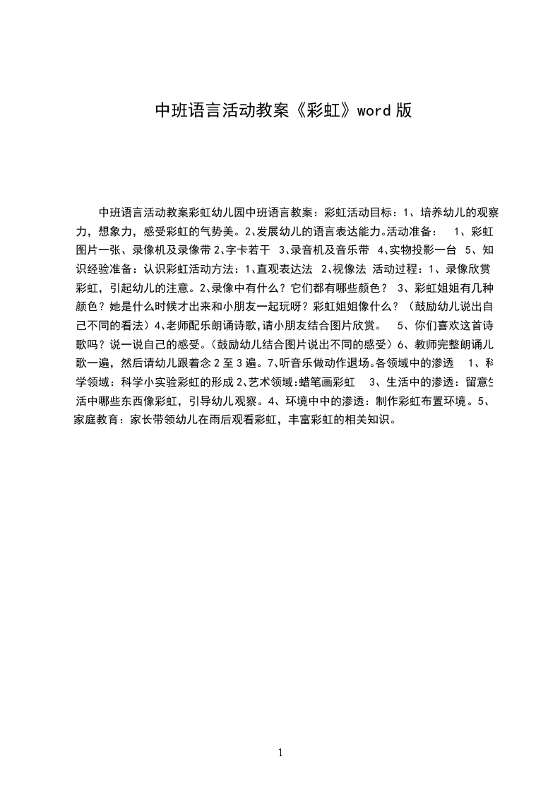 中班语言活动教案彩虹幼儿园中班语言教案:彩虹活动目标: