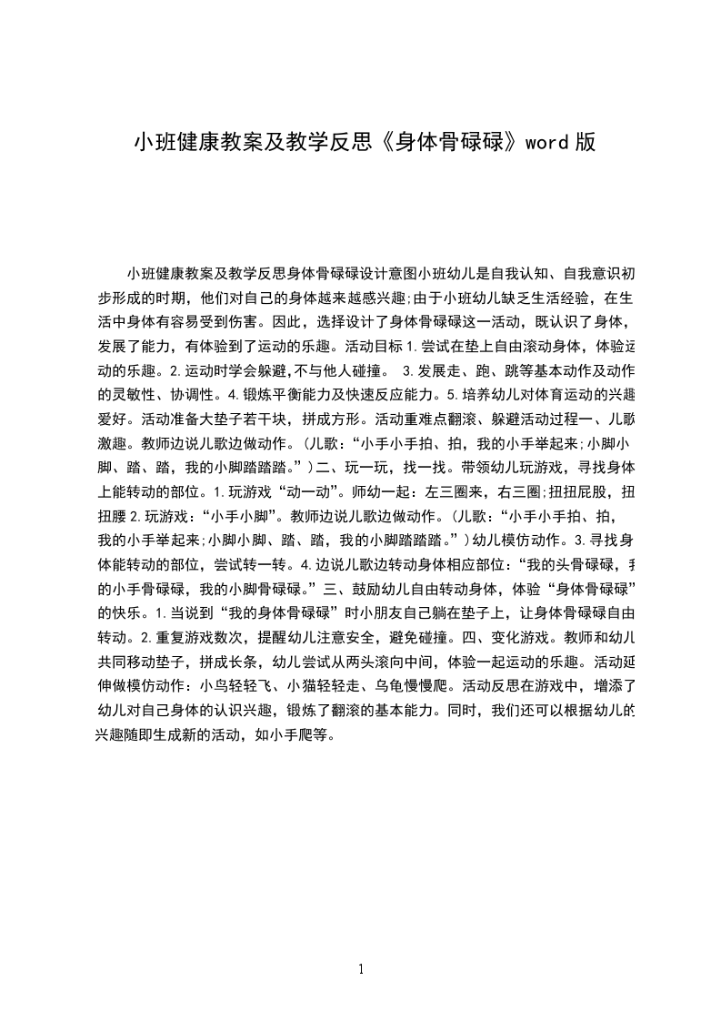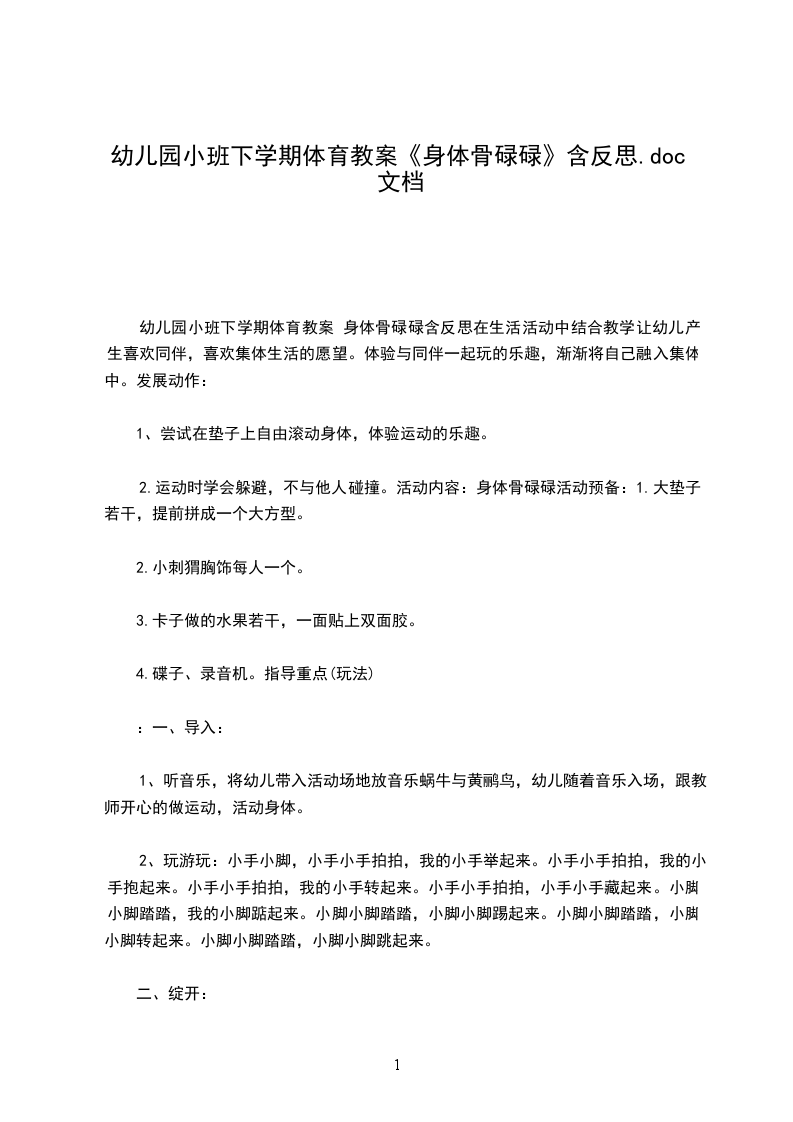 小班健康优秀教案及教学反思 身体骨碌碌发展动作: