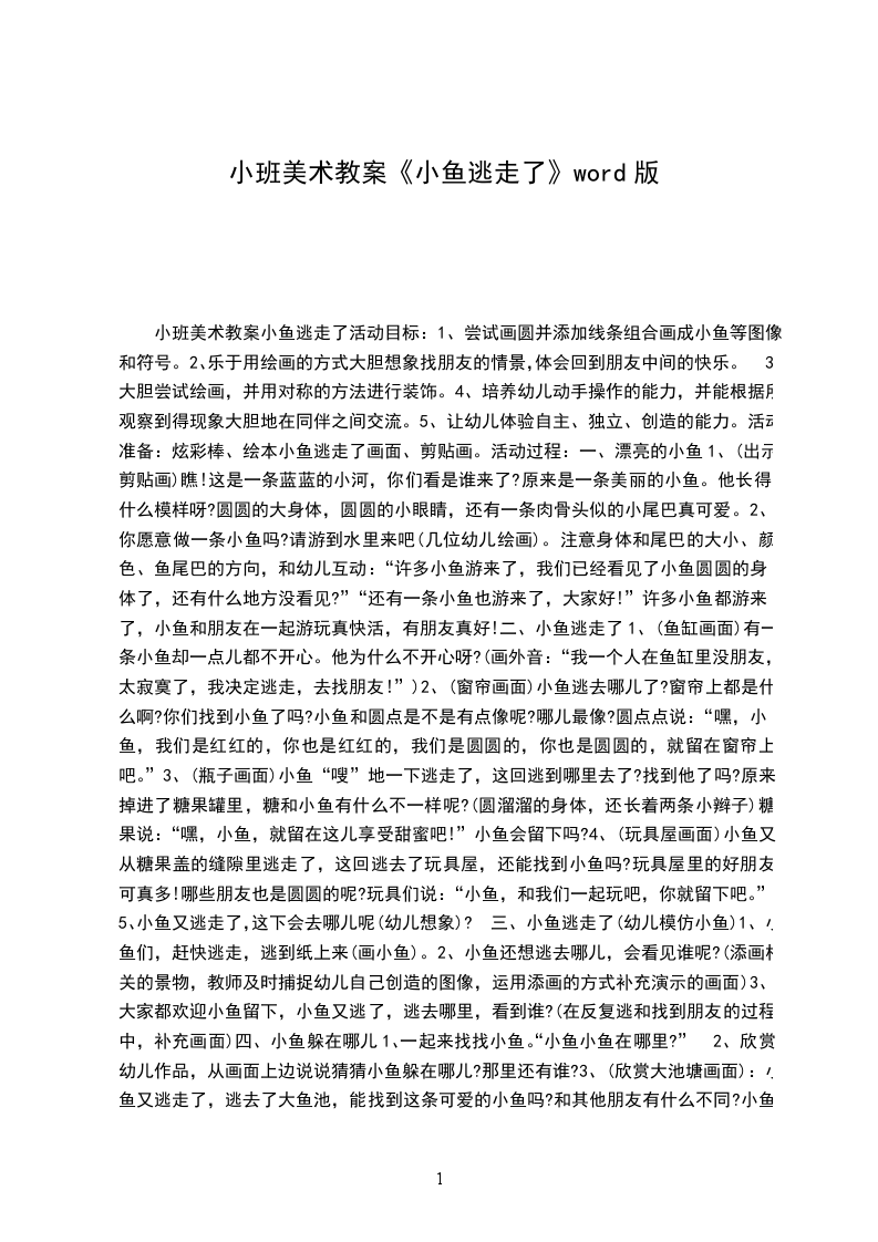 5、让幼儿体验自主、独立、创造的能力。活动准备:炫彩棒、绘本小鱼逃走了画面、剪贴画。