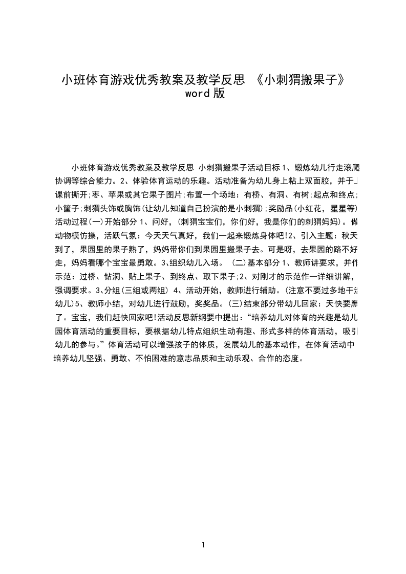 小班体育游戏优秀教案及教学反思 小刺猬搬果子活动目标