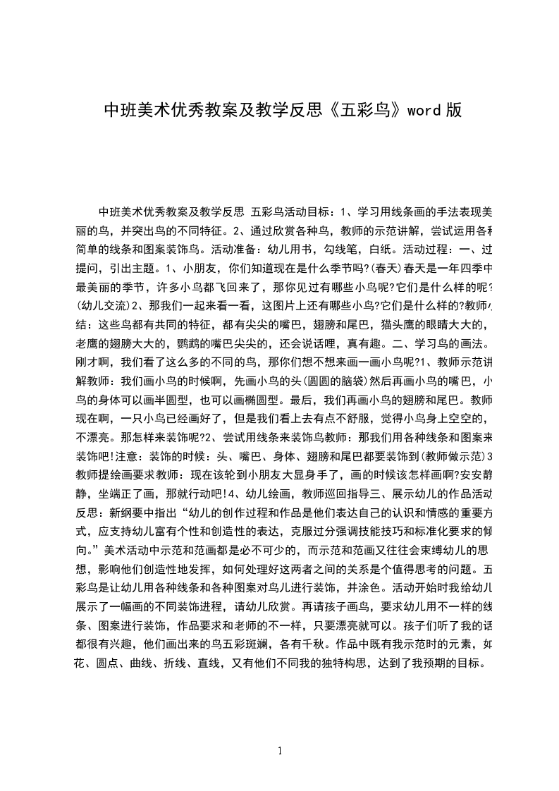 中班美术优秀教案及教学反思 五彩鸟活动目标: