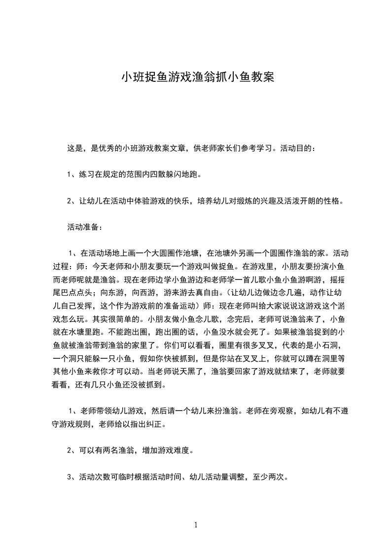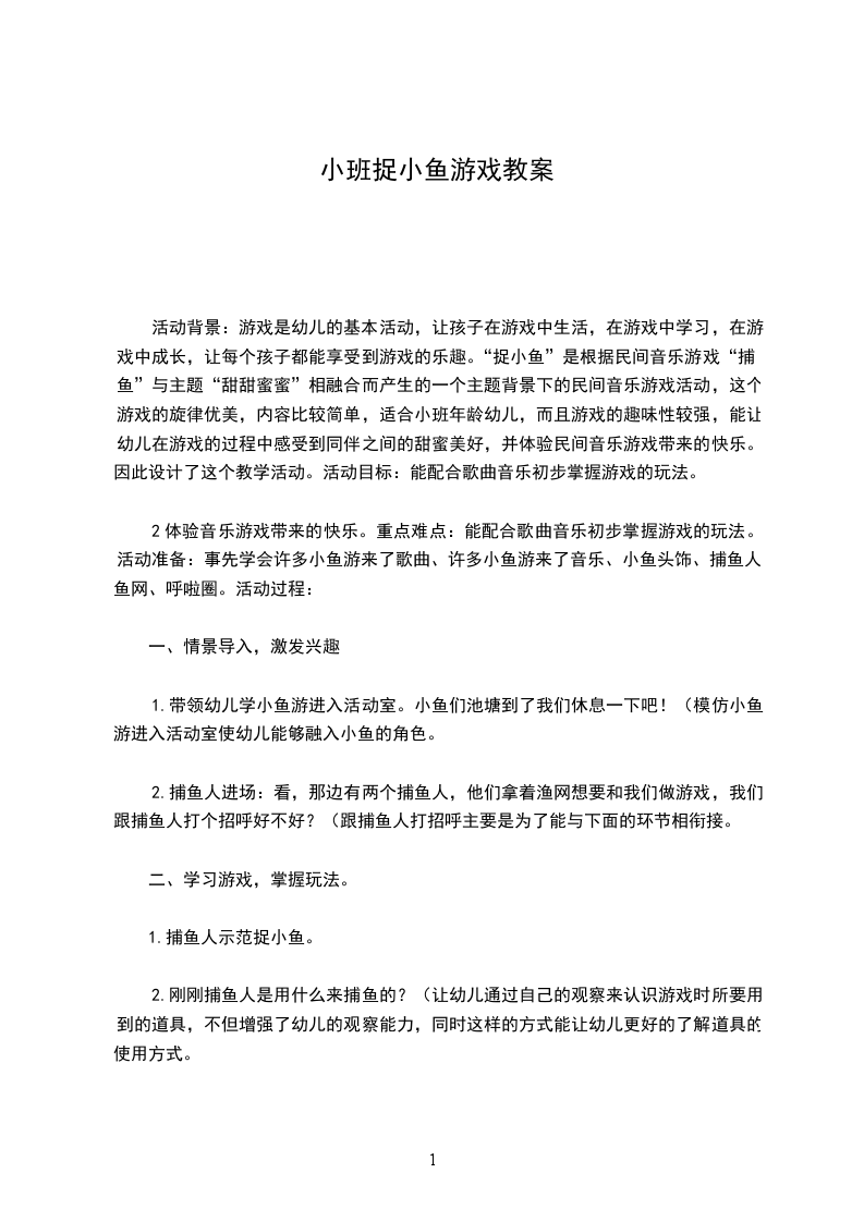 3、体验师生共同活动的快乐,激发幼儿共同学习的愿望,提高活动的能力。教学重点、难点:能准确快速的抓到鱼,在游戏中不能碰到扮演鱼儿的小朋友,只能碰到夹子。活动准备: