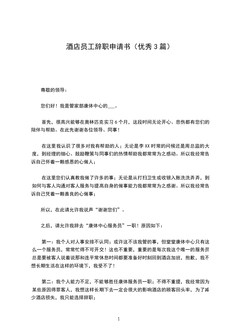 我怀着十分复杂的心情写下了这份辞职申请。作为一名__酒店的员工,尽管没有其他一些同事们久,但这也已经是我来到酒店的第_年了。