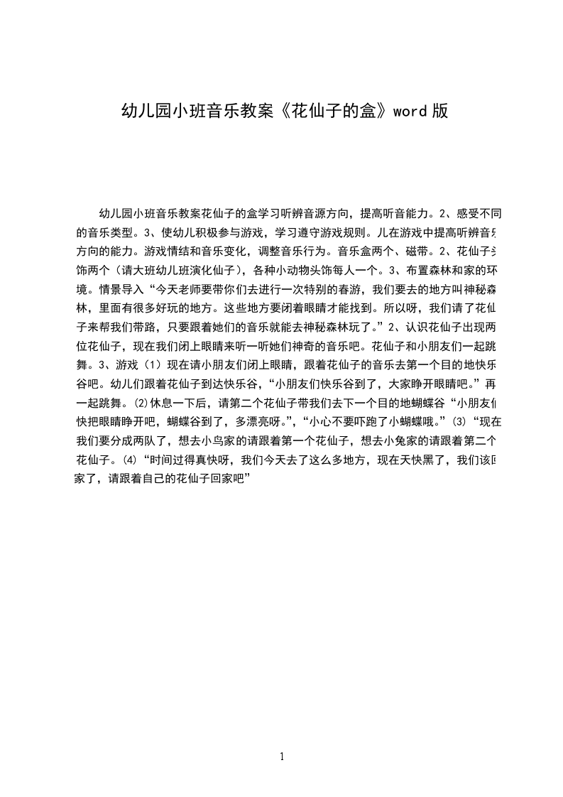 小班音乐公开课教案花仙子的音乐盒幼儿园小班音乐教案:花仙子的音乐盒活动目标: