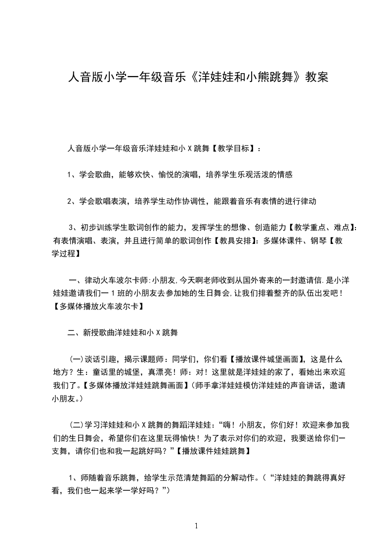 1、学唱歌曲洋娃娃和小X跳舞,演唱时做到吐字清楚、唱准曲调;