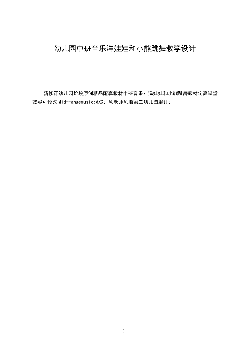 3、根据已有经验即兴地创编新歌词,并能根据歌词发挥想象力创编动作,大胆表现自己。教学重点、难点富有感情(高兴、快乐)地演唱、表演歌曲洋娃娃和小X跳舞,并能进行歌词创作和动作创编。活动准备物质准备: