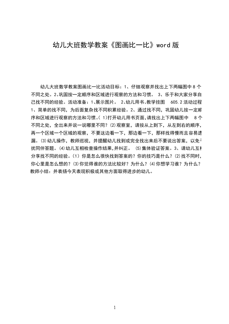 幼儿大班数学教案图画比一比活动目标: