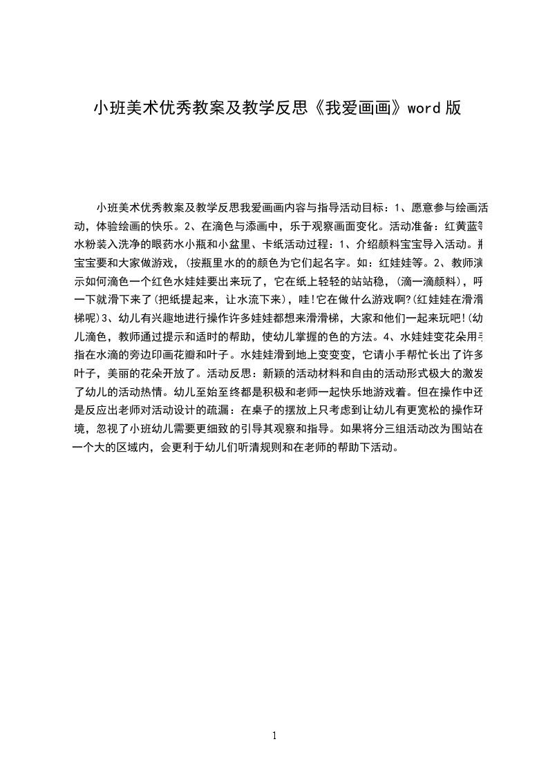 三、幼儿作画活动延伸布置幼儿绘画作品的展示活动。活动反思本次活动中幼儿的动手操作能力得到了很好的体现,活动给我最深的体会就是美术活动要重在引导。以前绘画的形式都是比较枯燥,孩子们的学习也相对呆板。其实,我们美术教育的目的不是重在学会多少技能,更多的是要让幼儿学会欣赏美,感受美,因为有了这样的基础才能真正地懂得创造美。