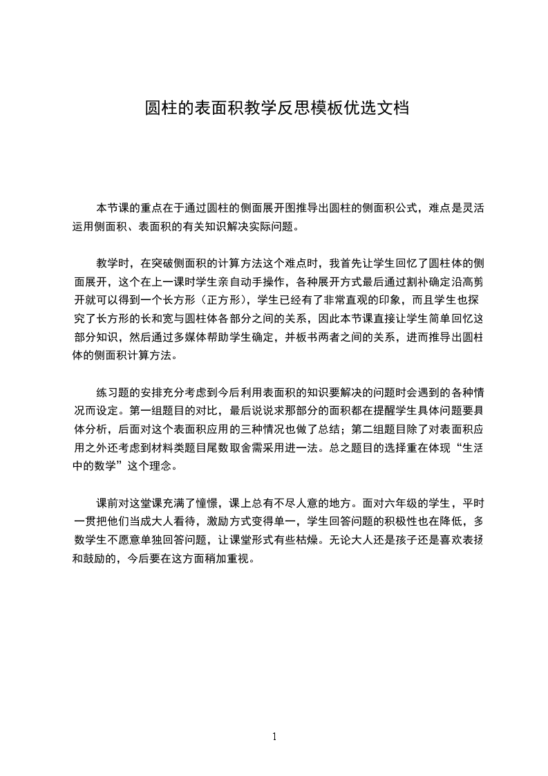 (四)总结评价,拓展延伸回顾一下咱们今天的学习,你有什么收获?要想算圆的面积你需要知道什么?现在告诉你的既不是半径也不是直径,更不是周长,而是正方形的面积是16平方米,求圆的面积。如果正方形的面积是13,圆的面积是?感谢你又一次帮我们沟通了圆的面积和以它的半径为边长的正方形面积之间的联系【对教学设计及实施的反思】本课是在学习的圆的初步认识和圆的周长的基础上进行教学的,教学重点是理解圆面积的推导过程。圆面积公式推导过程中隐含着一种重要的“转化”与“极限”数学思想方法。教学时我先让学生根据方格图大胆地猜想出圆面积的范围。之后在教师的启发引导下,通过学生的动手操作、观察、发现拼成的近似长方形的长和宽与圆的什么有关,从而推导出圆的面积,使学生获得用转化法可以求出圆的面积,体现一种“化圆为方”、“化未知为已知”的转化思想。在此基础上让学生通过讨论、操作、探究得出圆面积的计算。这一过程的设计正体现了新课标所倡导的三维教学目标,由重结论向重过程转变。不仅重视学生数学知识的获得,更重视数学思想和数学方法的形成,使学生学得更有趣,更有价值。教学中主要通过回忆、迁移、动手操作、自主探索,最后课件清晰演示加以辅助,理解圆面积公式的推导过程,从而突破本课的重难点。