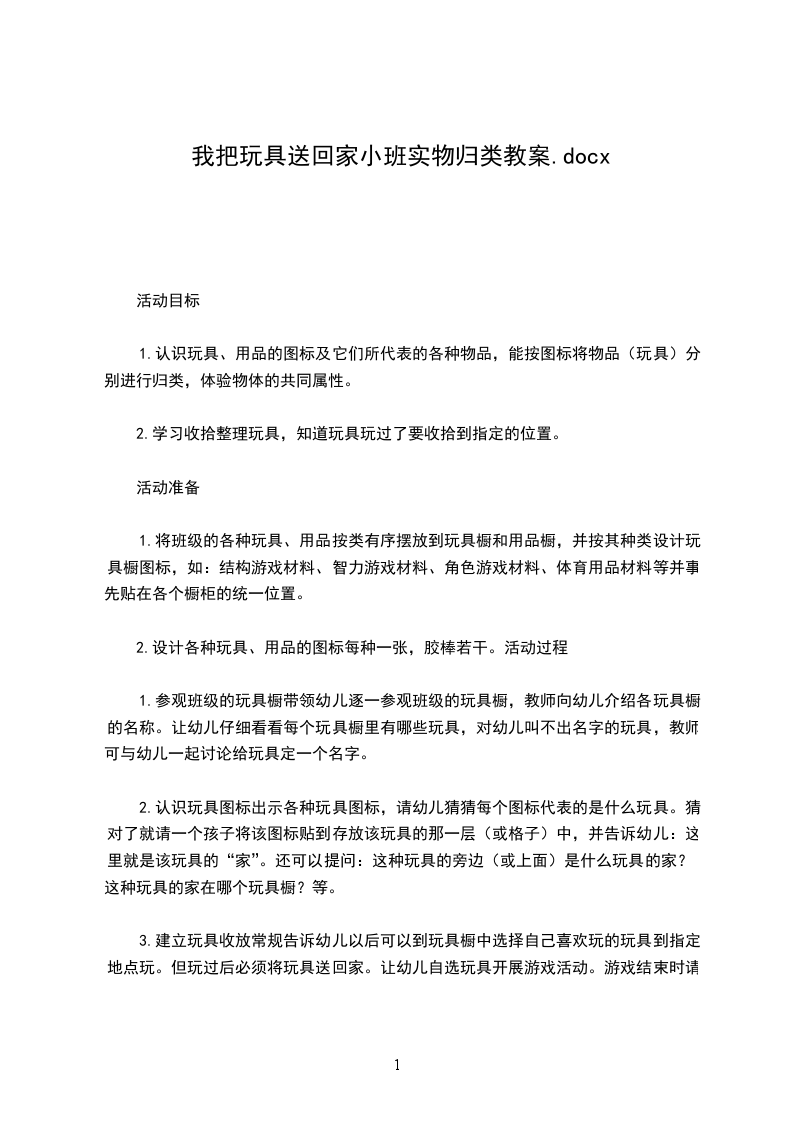 2、按玩具的种类进行分类并保持玩具家的清洁、整齐。活动准备:玩具柜、各种玩具、卡纸、水彩笔