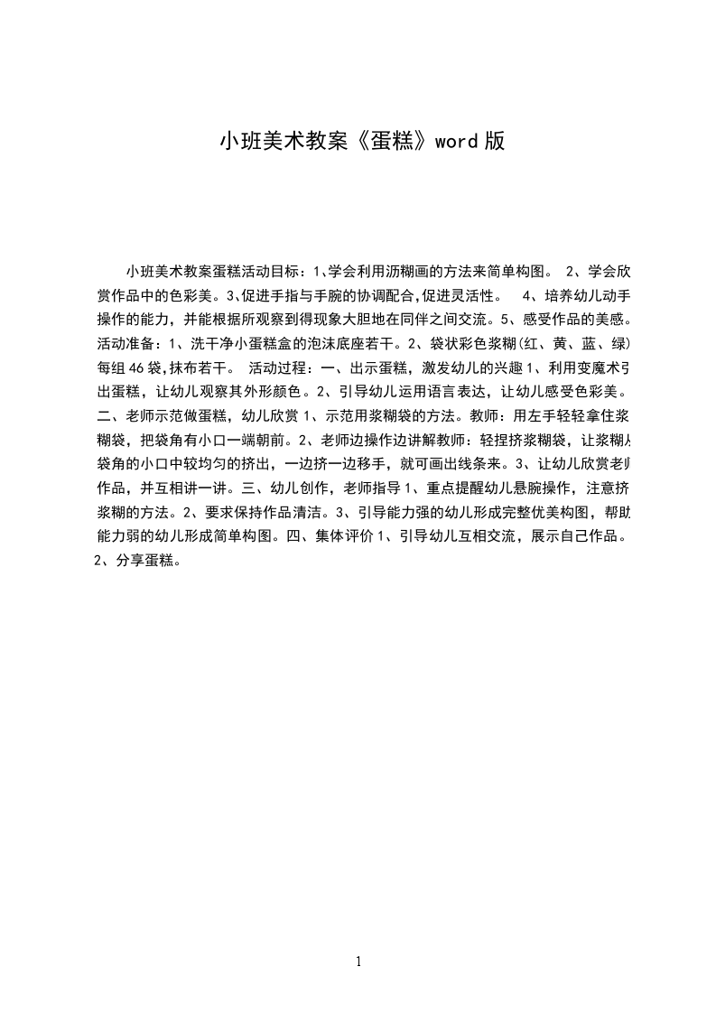 2、幼儿操作,老师观察指导。观察要点:幼儿制作“蛋糕”的不同表现。(动作、认知)情绪变化、交往情况。