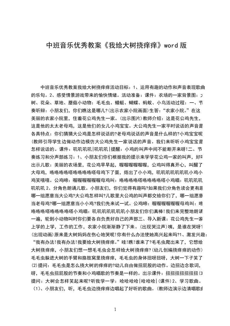 中班音乐优秀教案我给大树挠痒痒活动目标: