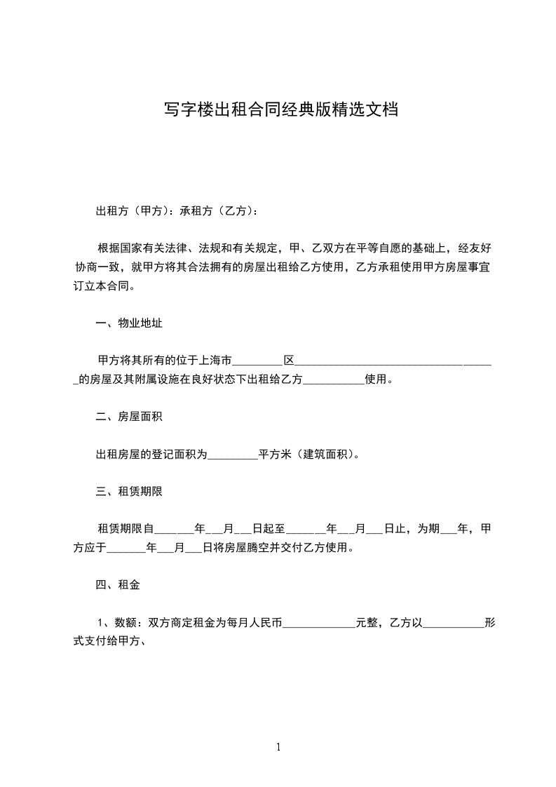 甲方合法拥有坐落于____市______区_____大厦_____层_____房屋,建筑面积为:________________平米(以下简称该房屋)。甲方同意将该承租单元平米出租给乙方。