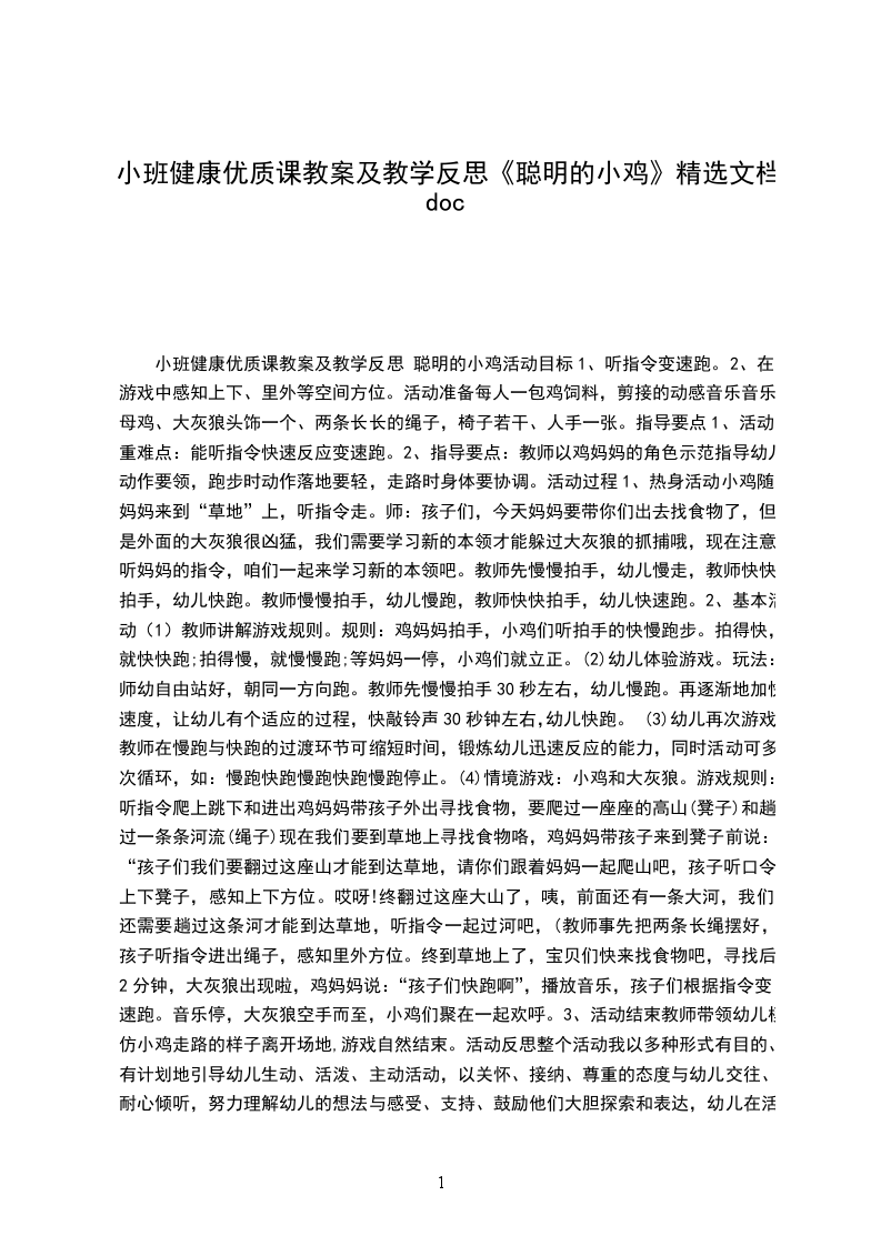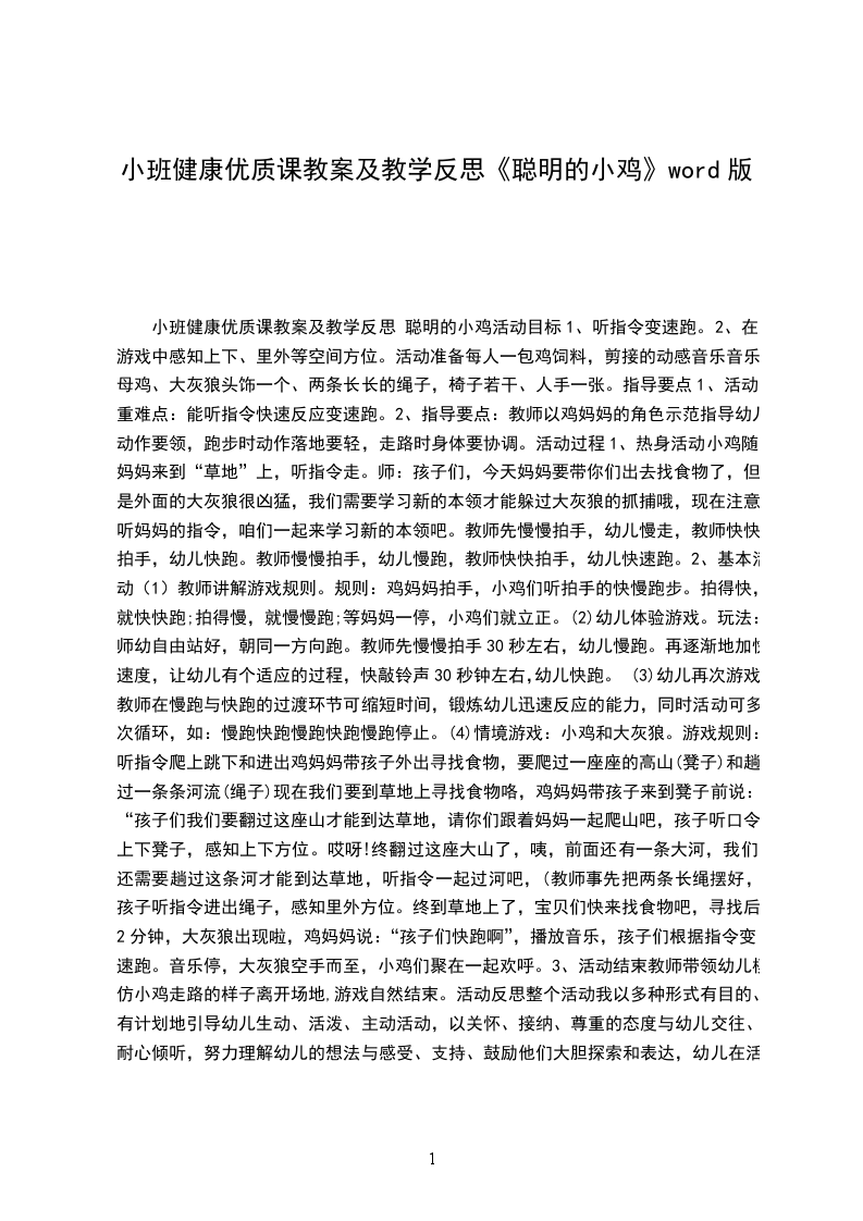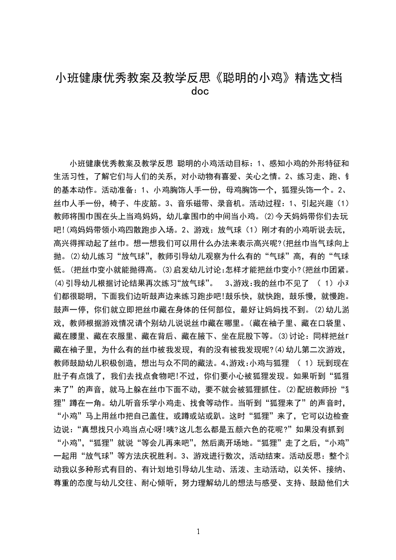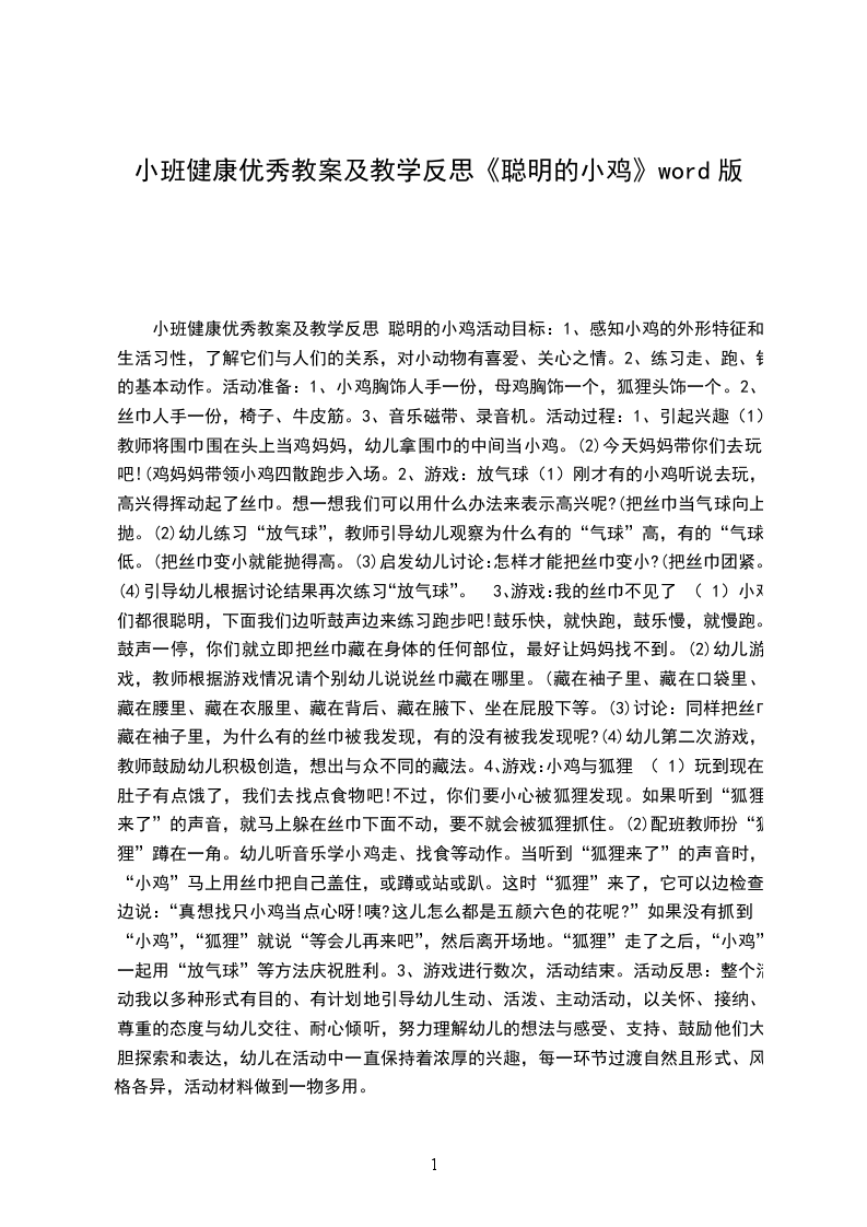 小班健康优秀教案及教学反思 聪明的小鸡活动目标: