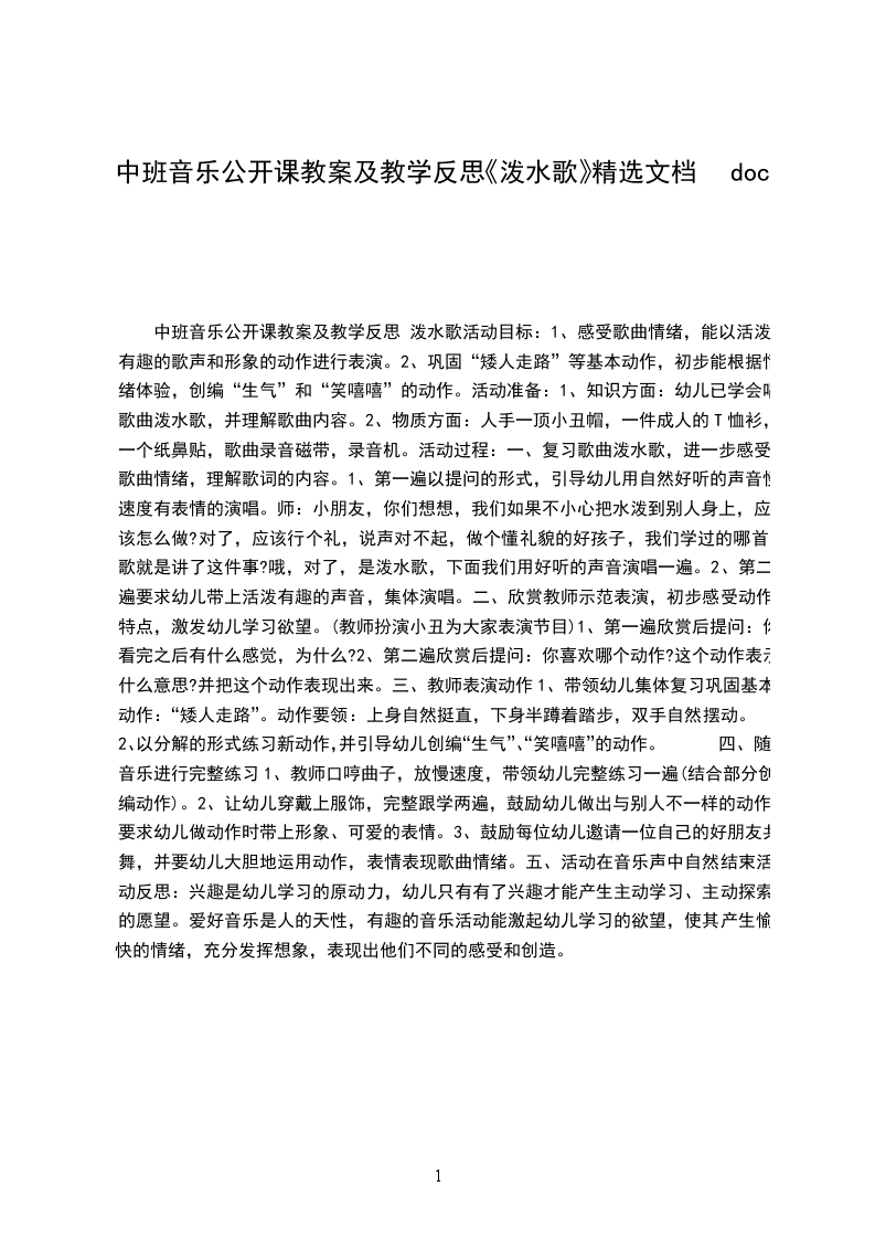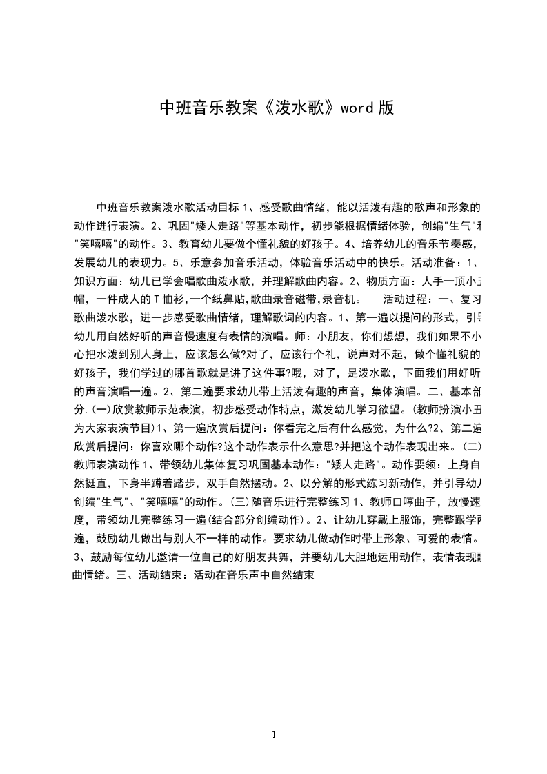 中班音乐教案泼水歌活动目标