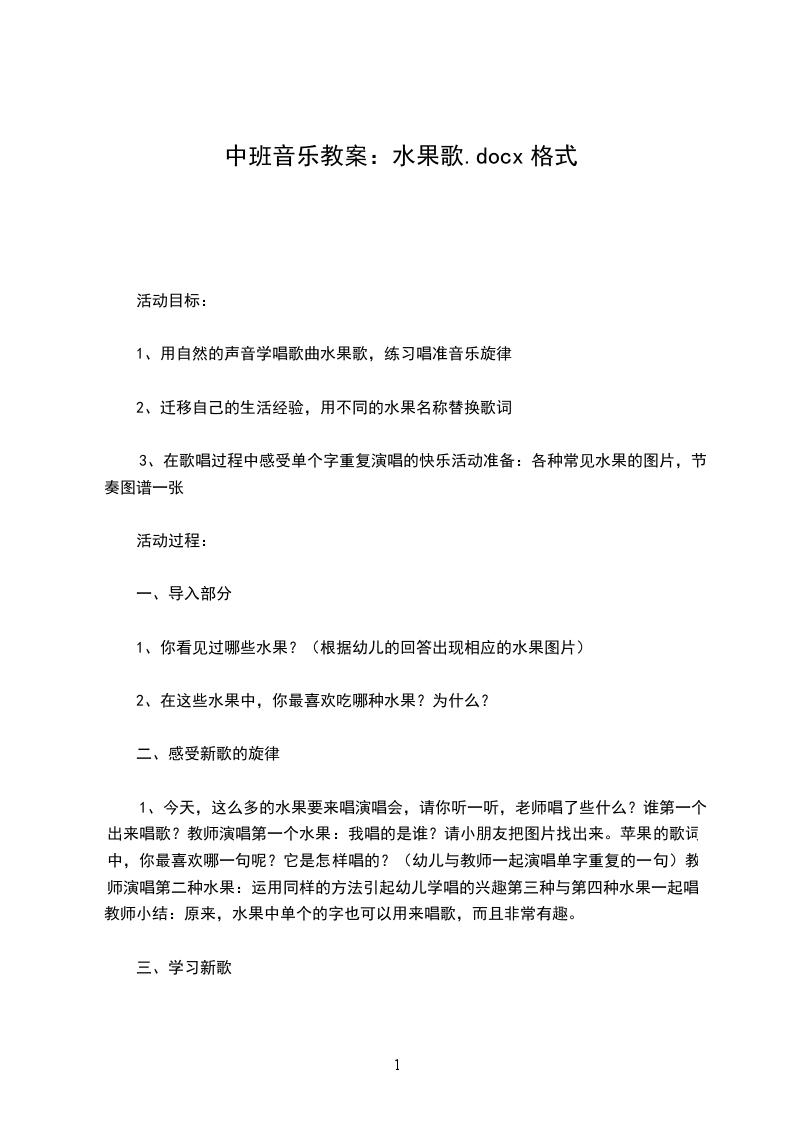 1、感受歌曲情绪,能以活泼有趣的歌声和形象的动作进行表演。