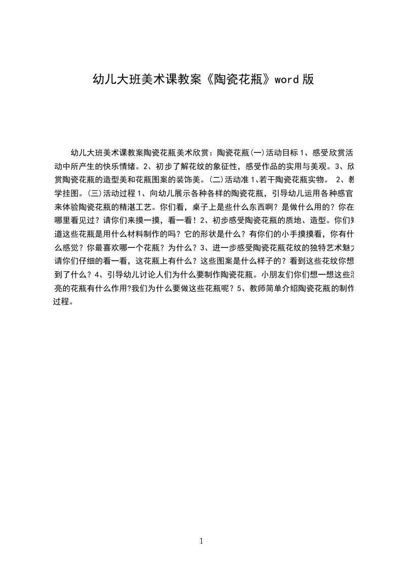 幼儿大班美术课教案陶瓷花瓶美术欣赏:陶瓷花瓶