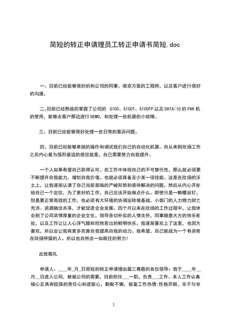 您好!我自_年_月_日进入注册部,至今试用期已满,根据公司的规章制度,现申请转为正式员工。