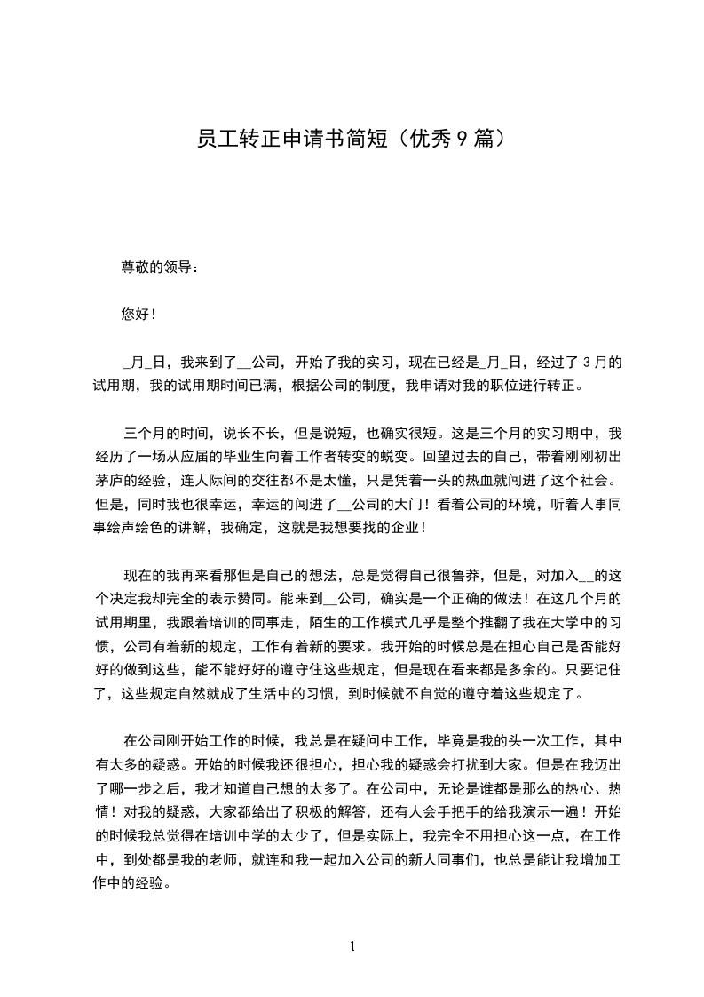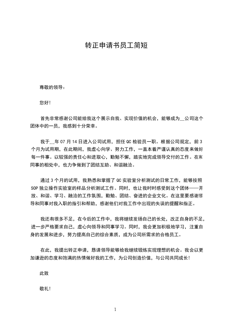 我20__年__月__日成为公司的试用员工,到今天已经过了两个多月的试用期,现申请转为公司的正式员工。