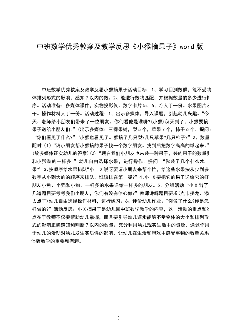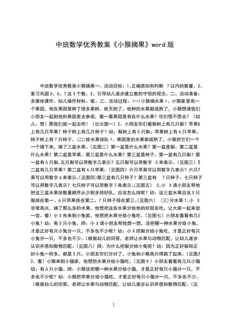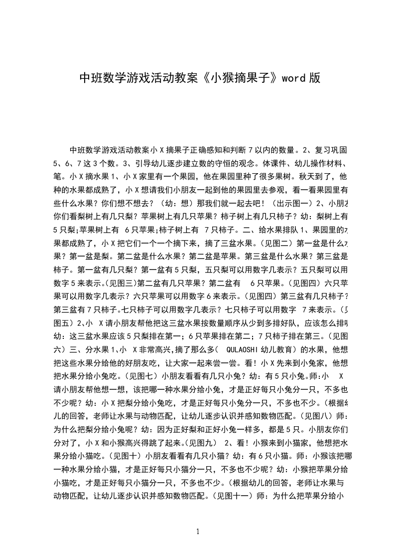 中班数学优秀教案及教学反思小猴摘果子活动目标: