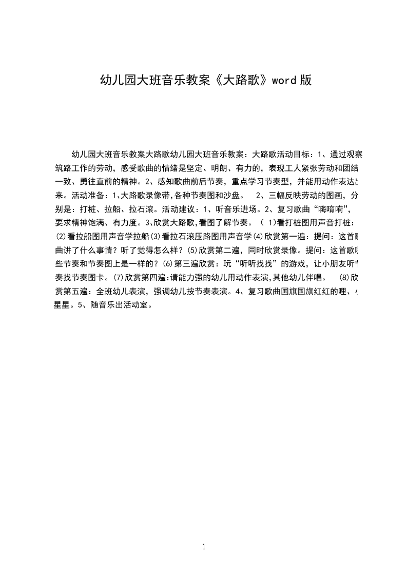 幼儿园大班音乐教案大路歌幼儿园大班音乐教案:大路歌活动目标: