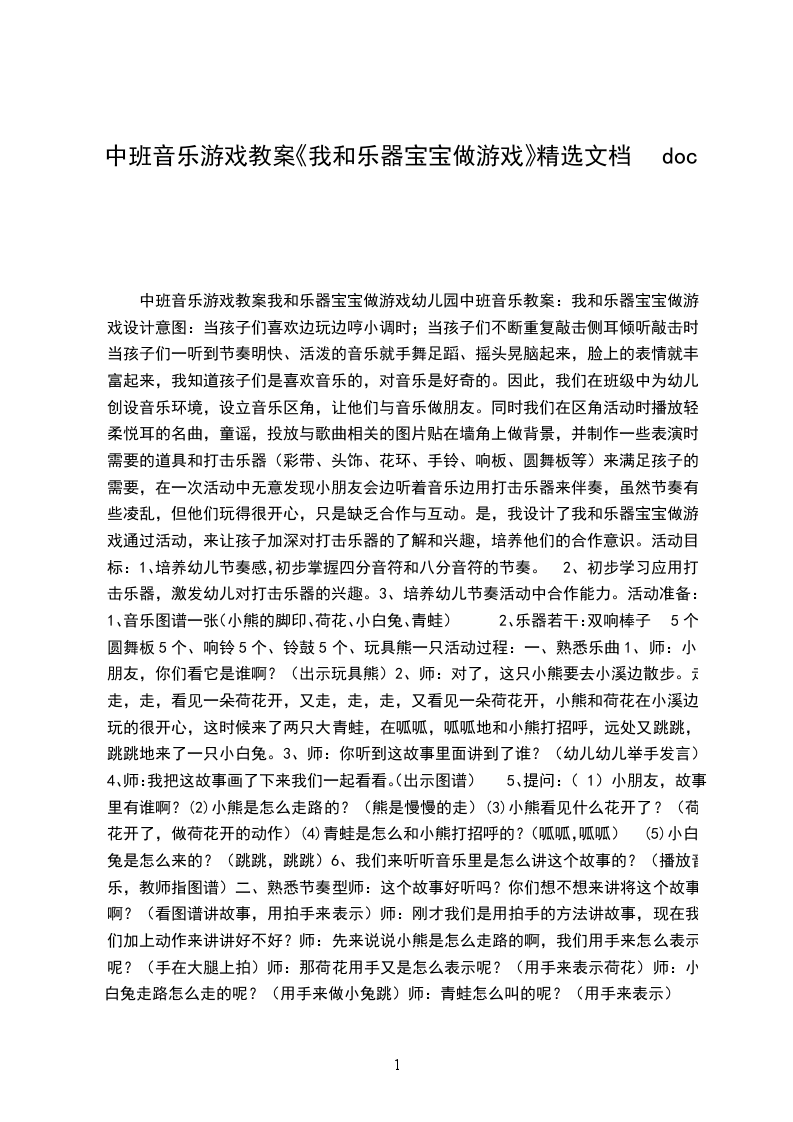 中班音乐游戏教案《我和乐器宝宝做游戏》精选文档doc