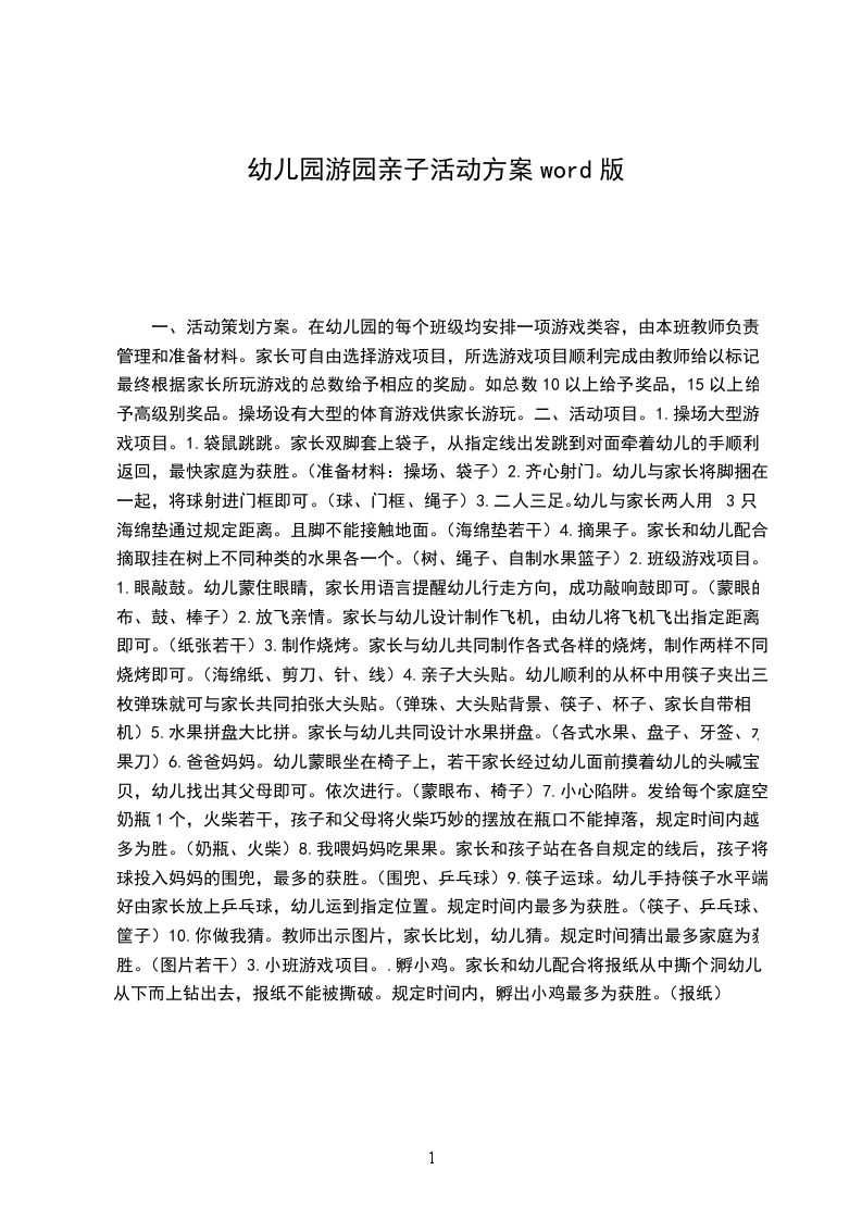 一、活动策划方案。在幼儿园的每个班级均安排一项游戏类容,由本班教师负责管理和准备材料。家长可自由选择游戏项目,所选游戏项目顺利完成由教师给以标记。最终根据家长所玩游戏的总数给予相应的奖励。如总数10以上给予奖品,15以上给予高级别奖品。操场设有大型的体育游戏供家长游玩。