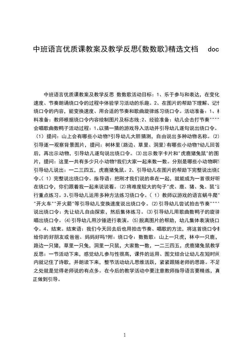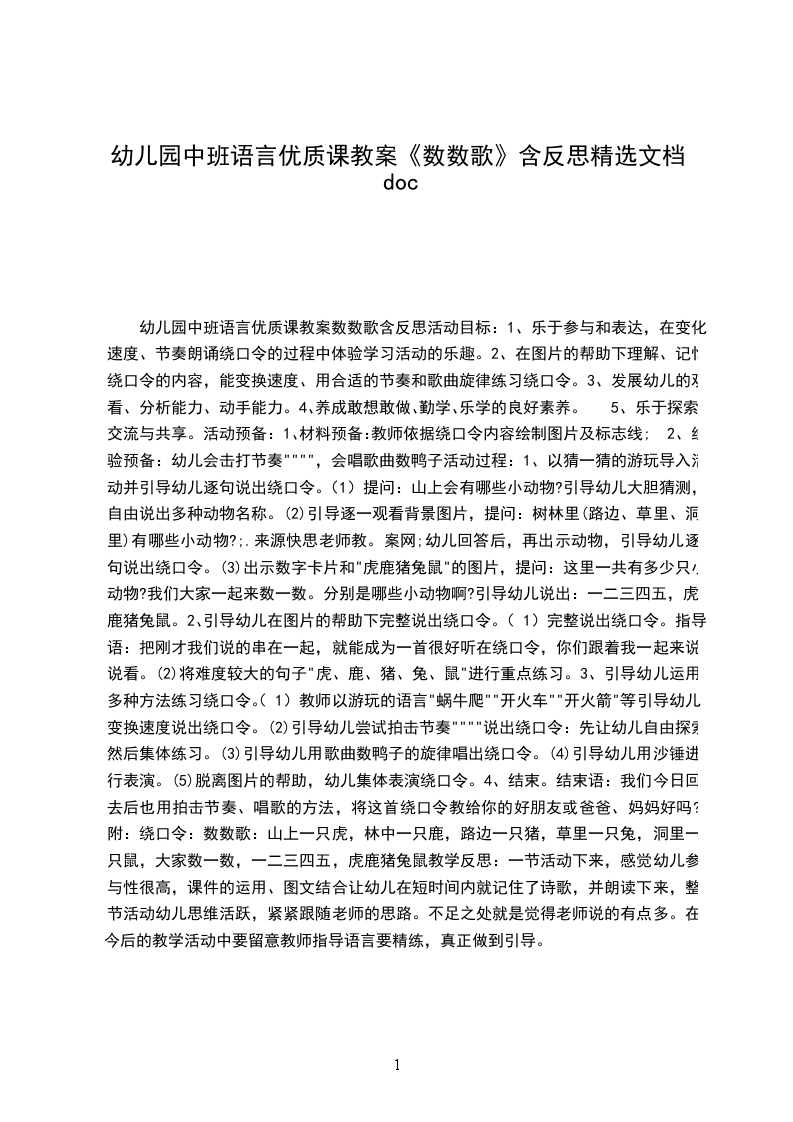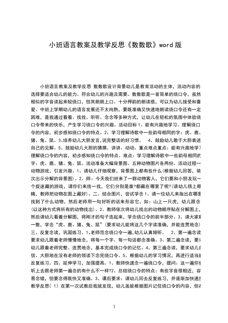 中班语言教案及教学反思数数歌活动目标: