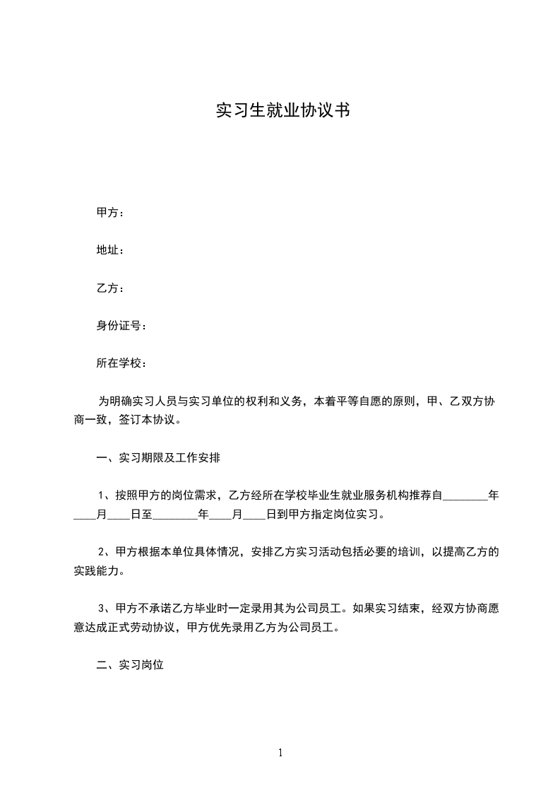 1、按照甲方的岗位需求,乙方经所在学校毕业生就业服务机构推荐自________年____月____日至________年____月____日到甲方指定岗位实习。