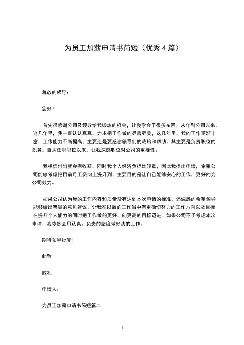 为员工加薪申请书简短篇四