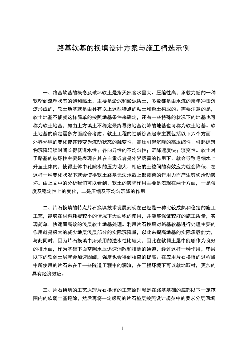 二、片石换填的特点片石换填技术发展到现在已经是一种比较成熟和稳定的施工工艺,能够在材料耗费较小的情况下大面积的使用,并能够保证较好的施工质量,实现简单、快速而高效的浅层软土地基处理。利用片石换填对路基软基进行处理主要的作用就是极大的减少地层浅层部分的实际沉降量,以此来提高地基的实际承载能力,与此同时,因为片石换填中所采用的透水性比较大,因此在软弱土层中能够作为良好的排水面,作为基础下面空隙水压迅速消散和排除的通道,经过这样一种作用,垫层以下的软弱土层就会加速固结,强度也会得到相应的提高。在应用片石换填的过程当中所使用的片石来在于一些隧道工程中的洞渣,在工程环境下可以就地取材,更加的具有经济效应。