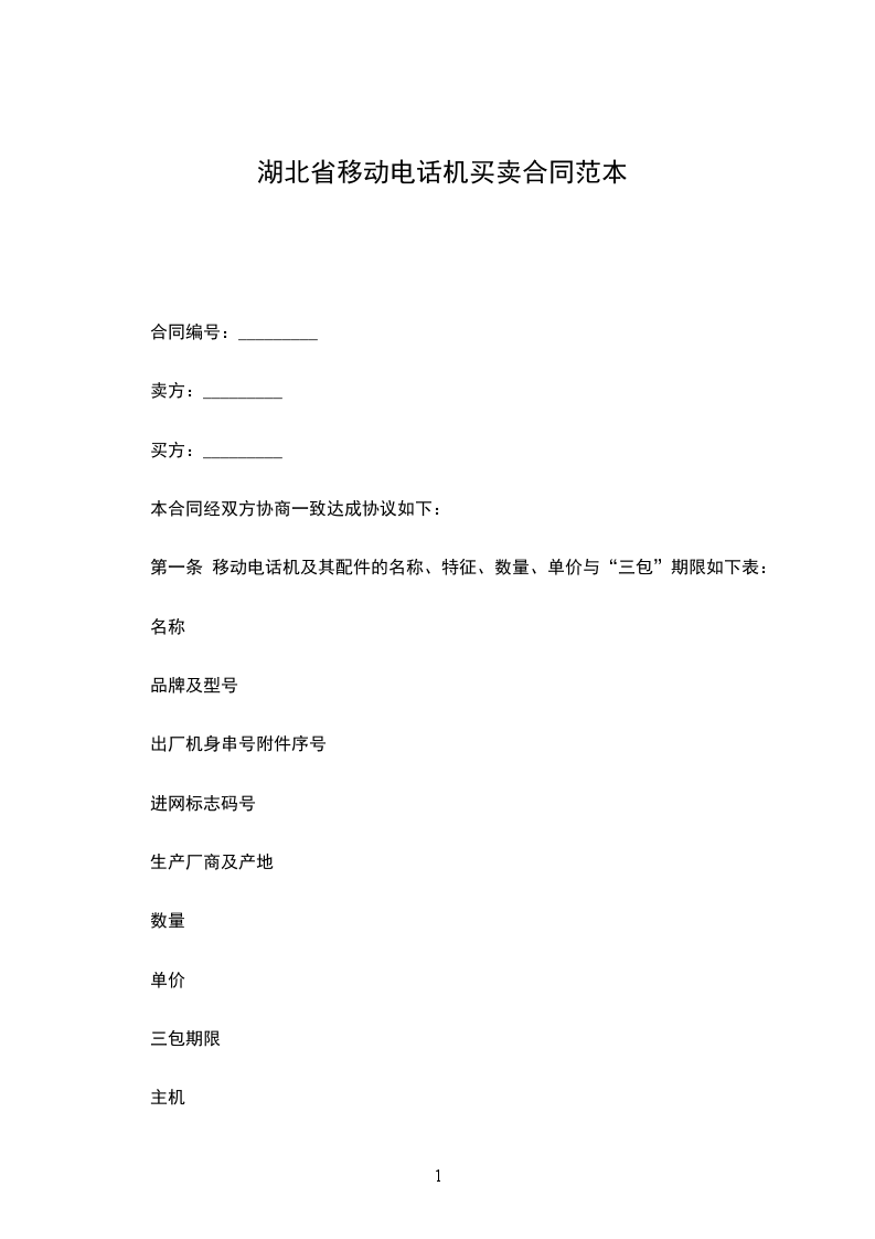 第一条 移动电话机及其配件的名称、特征、数量、单价与“三包”期限如下表: