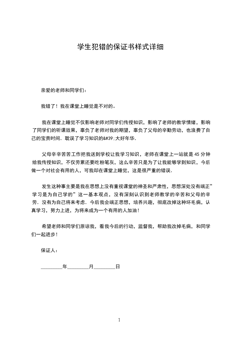 我错了!我在课堂上睡觉是不对的。