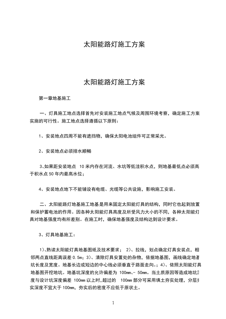 1)、熟读太阳能灯具地基图纸及技术要求;2)、拉线,划点确定灯具安装点,相邻两点直线距离误差0.5m;3)、清除灯具安置处的杂物,依据地基图,画线确定地基坑长度及宽度。地基长边或短边的中心线必须垂直于路面走向。;4)、依照太阳能灯具地基图开挖地坑。地基坑深度的允许偏差为 100mm、-50mm。当土质原因等造成地坑深度与设计坑深度偏差 100mm以上时,超过的 100mm部分可采用填土夯实处理,分层夯实深度不宜大于100mm,夯实后的密度不应低于原状土。