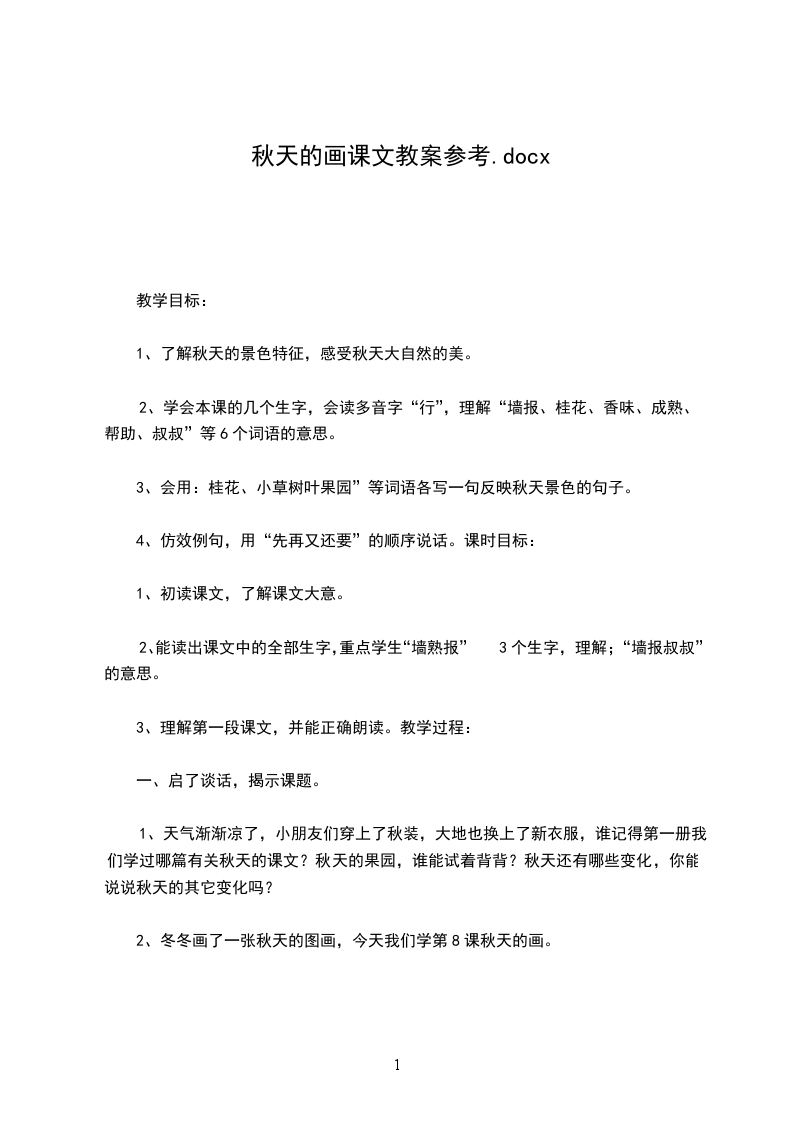 1.让幼儿了解秋天是丰收的季节、美丽的季节,感受秋天的丰富性。