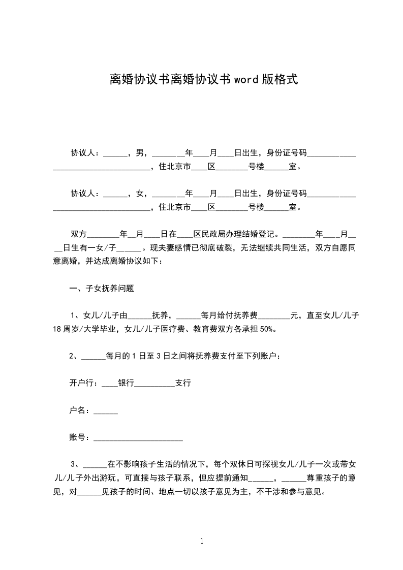 五、陈_可在每月的第一个星期六早上八点接儿子到其居住地,星期日早上九点送回李_居住地。如临时或春节探望,可提前一天与李_协商,达成一致后可按协商的办法进行探望。本协议一式叁份,双方各执一份,婚姻登记机关存档一份,在双方签字,并经婚姻登记机关办理相应手续后生效。协议人:协议人:_年_月_日_年_月_日