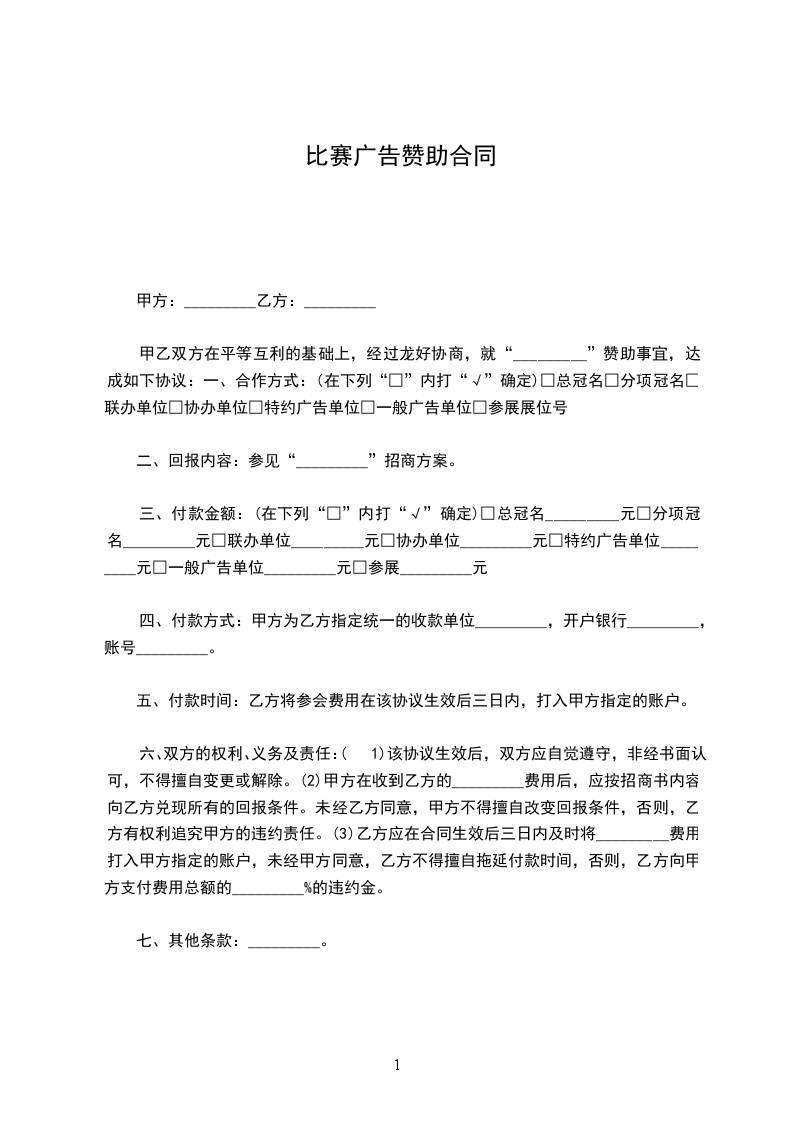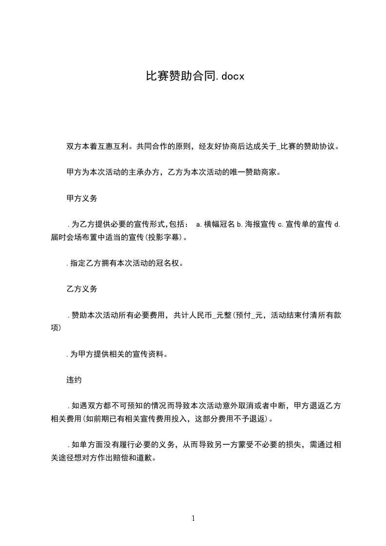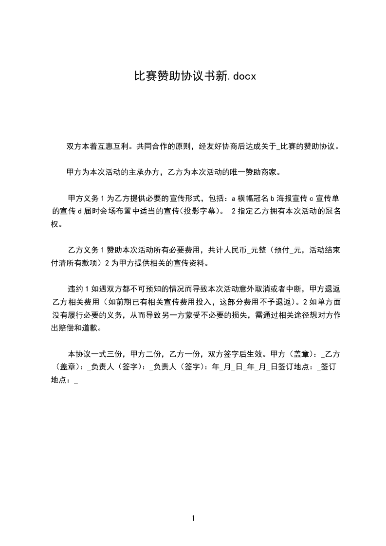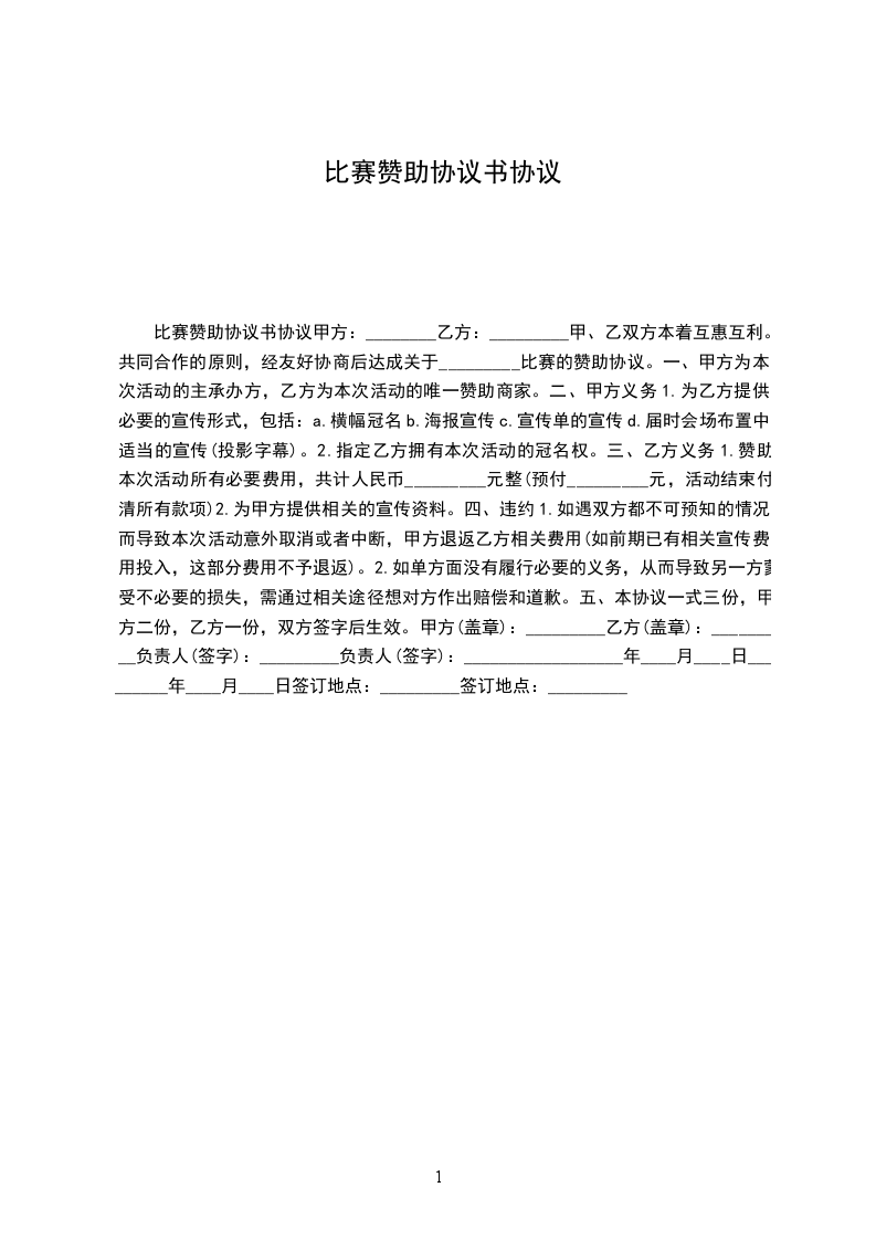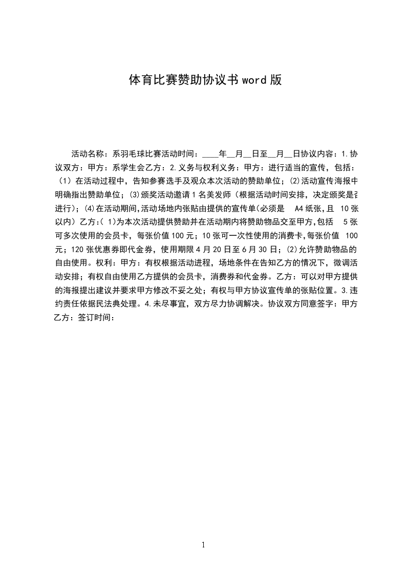 活动名称:系羽毛球比赛活动时间:____年__月__日至__月__日协议内容: