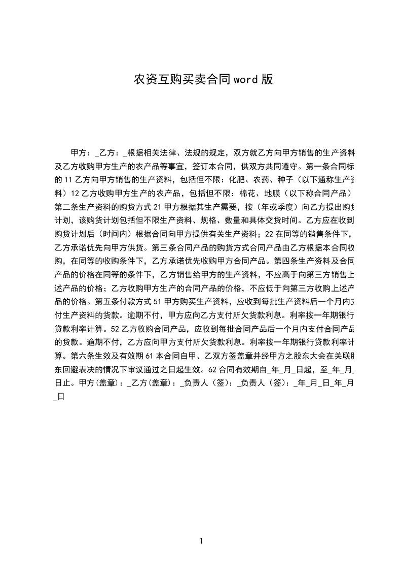 甲方:_乙方:_根据相关法律、法规的规定,双方就乙方向甲方销售的生产资料及乙方收购甲方生产的农产品等事宜,签订本合同,供双方共同遵守。