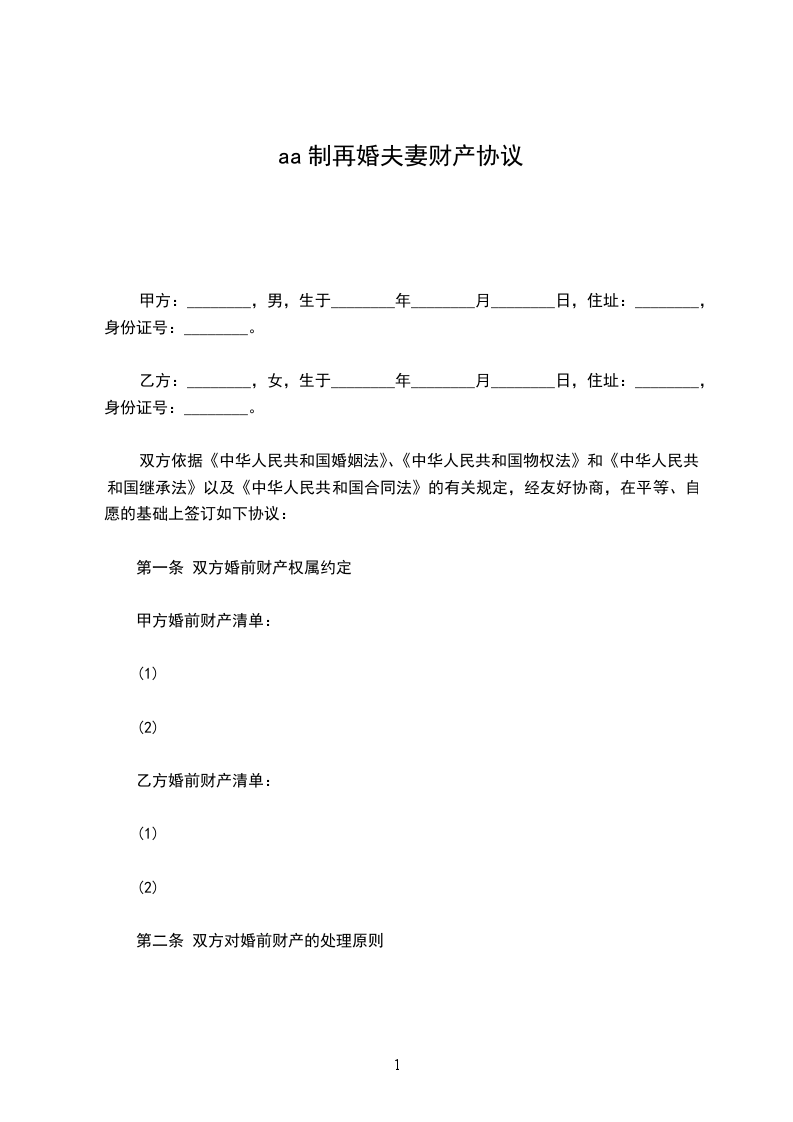 男方:_______________(以下简称甲方)
