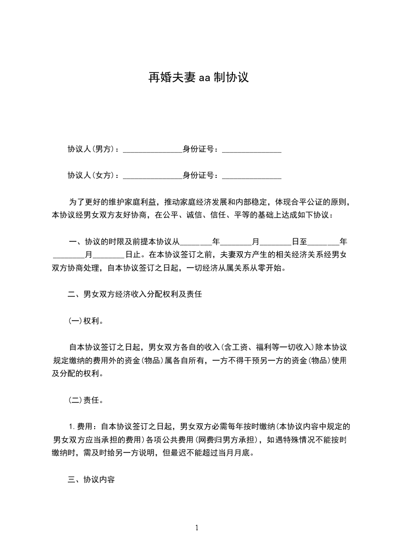 男女双方通过自由恋爱,准备结婚,共筑爱巢,白头到老。为避免和减少家庭婚姻纠纷,现双方经过理智协商,达成如下协议条款,供双方在结婚后自觉遵守。